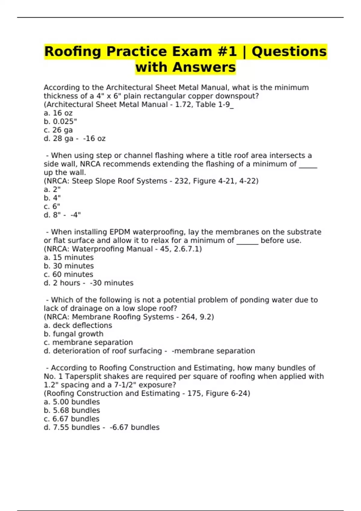 sample test for roofing Exam Questions and Answers