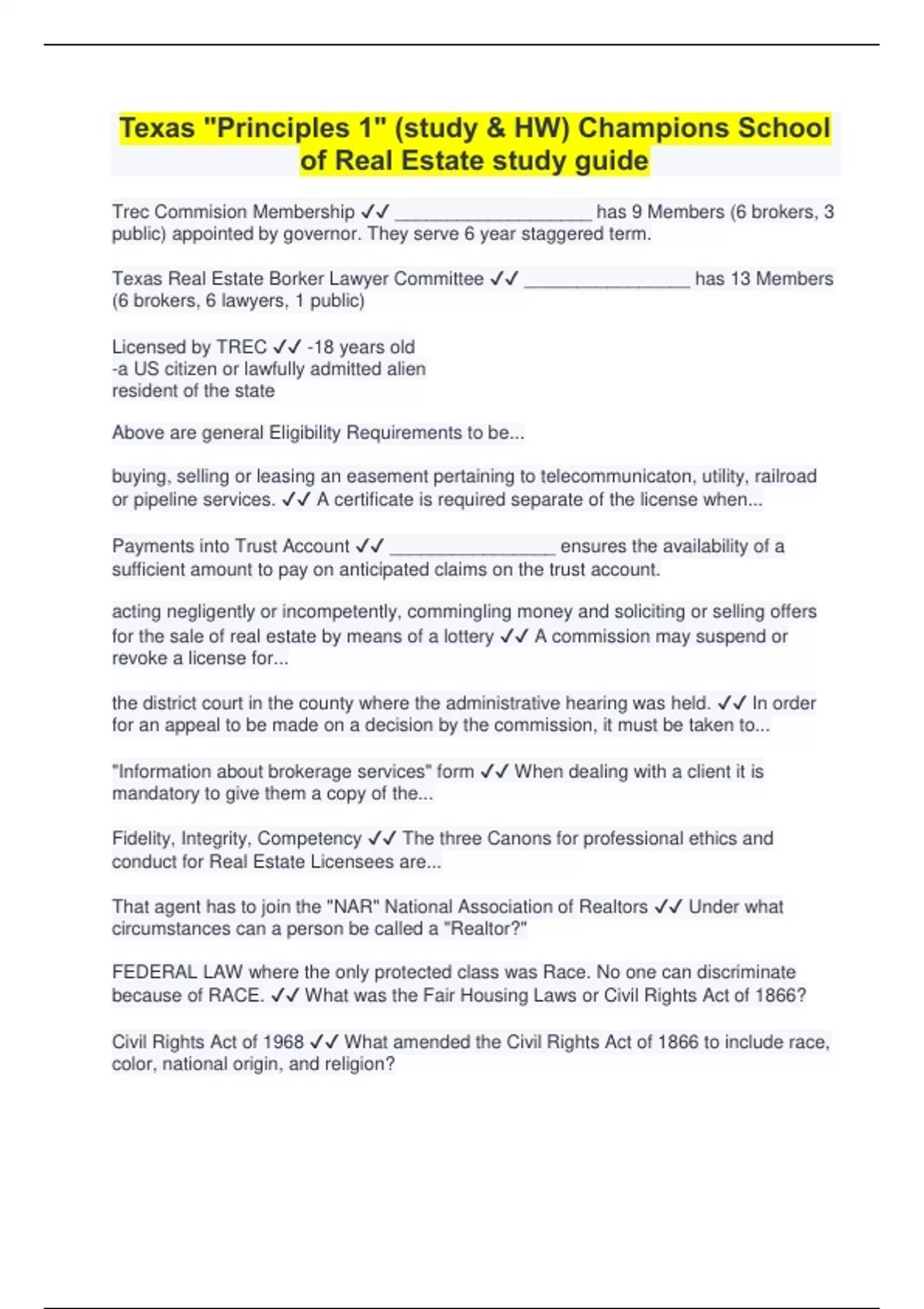 Champions School of Real Estate Exam Questions with Correct Answers| Latest Update Graded A+ 22 Exam (elaborations) Champions School of Real Estate - Exam Prep Questions with Correct Answers| Latest Update Graded A+ 23 Exam (elaborations) Marketing SAE Exam Questions with Correct Answers| Latest Update Graded A+ 24 E