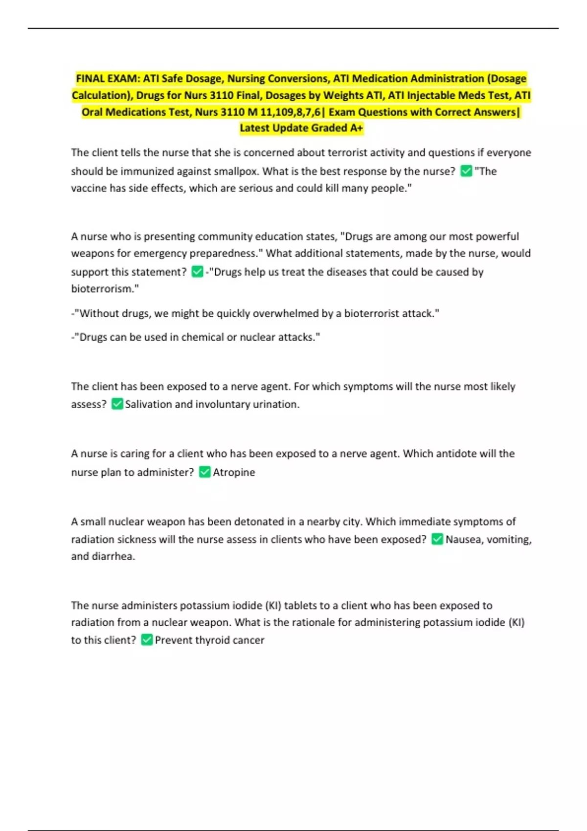 ATI Medication Administration Test Exam Questions and Answers| Latest Update Graded A+ 18 Exam (elaborations) ATI Medication Administration Test Questions and Answers| Latest Update Graded A+ 19 Exam (elaborations) ATI - Medication Administration 1 Lesson Questions (1-3) Questions and Answers| Latest Update Graded A+ 20 Exam (elaborations) ATI - Me