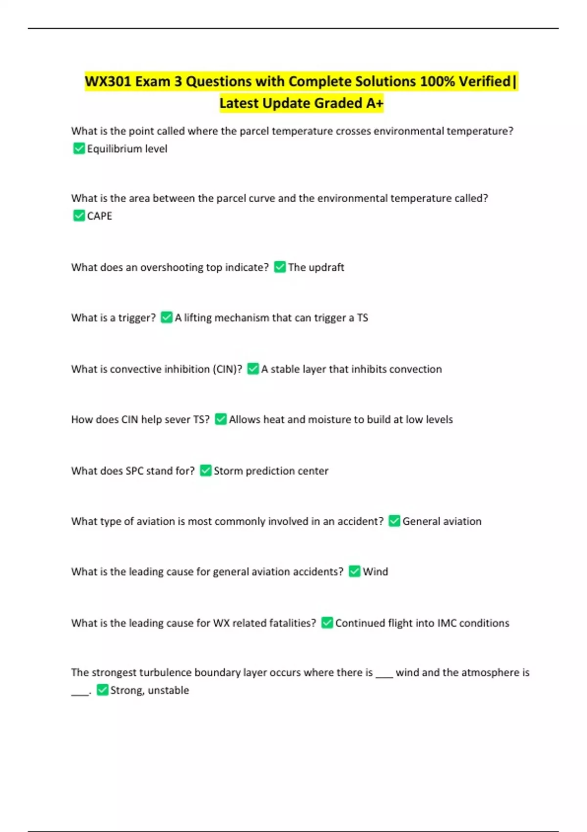 WX301 Exam 3 Questions with Complete Solutions 100% Verified| Latest Update Graded A+ 2 Exam (elaborations) WX301 Pressure and Winds| Questions with Complete Solutions 100% Verified| Latest Update Graded A+ 3 Exam (elaborations) WX301 Aviation Weather Test 3| Questions with Complete Solutions 100% Verified| Latest Update Graded A+