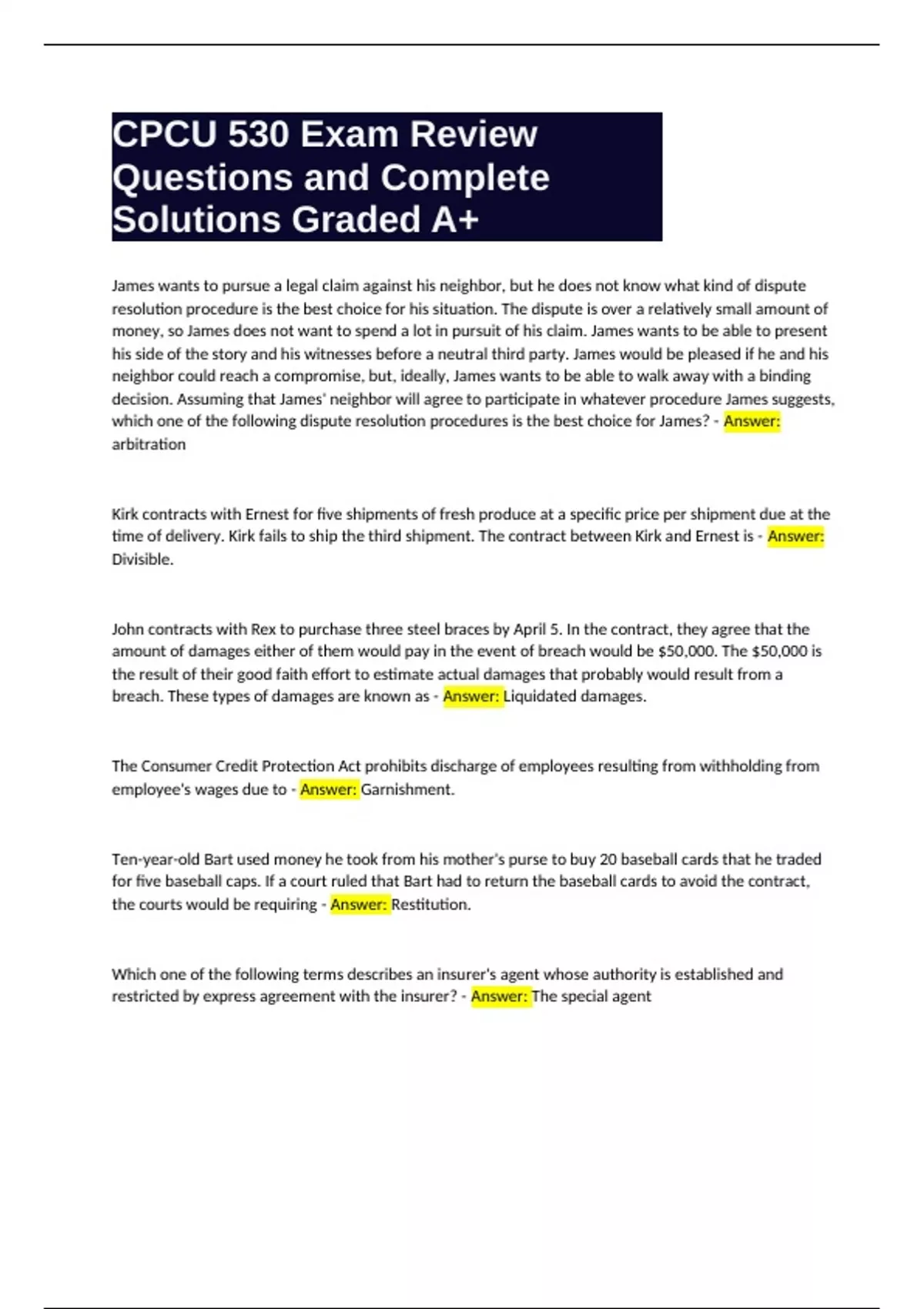 CPCU 530 Questions and Complete Solutions Graded A Package Deal