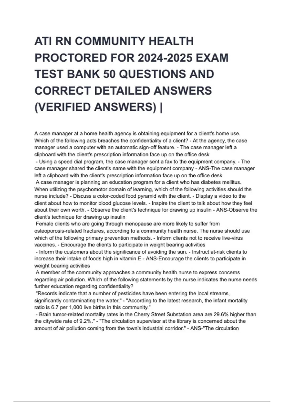 ATI RN COMMUNITY HEALTH NGN ACTUAL EXAM QUESTIONS AND CORRECT DETAILED ANSWERS 2025/2026 (VERIFIED ANSWERS) |ALREADY GRADED A+||BRAND NEW!! (ALL BUNDLED HERE!!!)