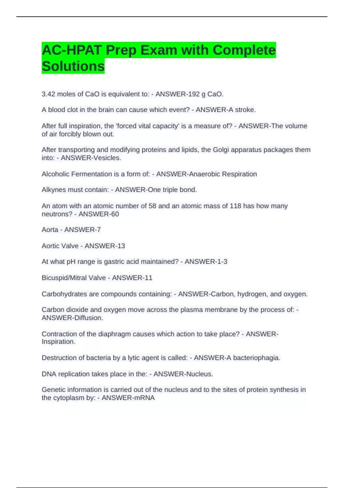 AC HPAT Physics (Actual) Exam Rated A+ 2 Exam (elaborations) AC- HPAT Bio Test Prep Graded A+ -Algonquin 3 Exam (elaborations) AC-HPAT Biology Comprehensive Exam Rated A+ (Verified) 4 Exam (elaborations) AC-HPAT Chemistry with Complete Solutions 5 Exam (elaborations) AC-HPAT Prep Exam with Complete Solutions 6 Exam (elaborations) HPAT Vocabula