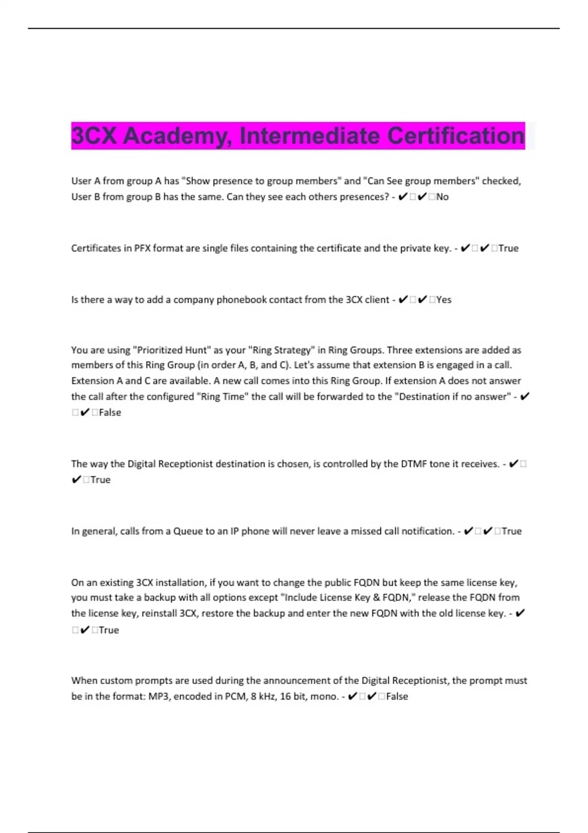 3CX Academy, Advanced Certification Combined Sets Of both Questions And Answers