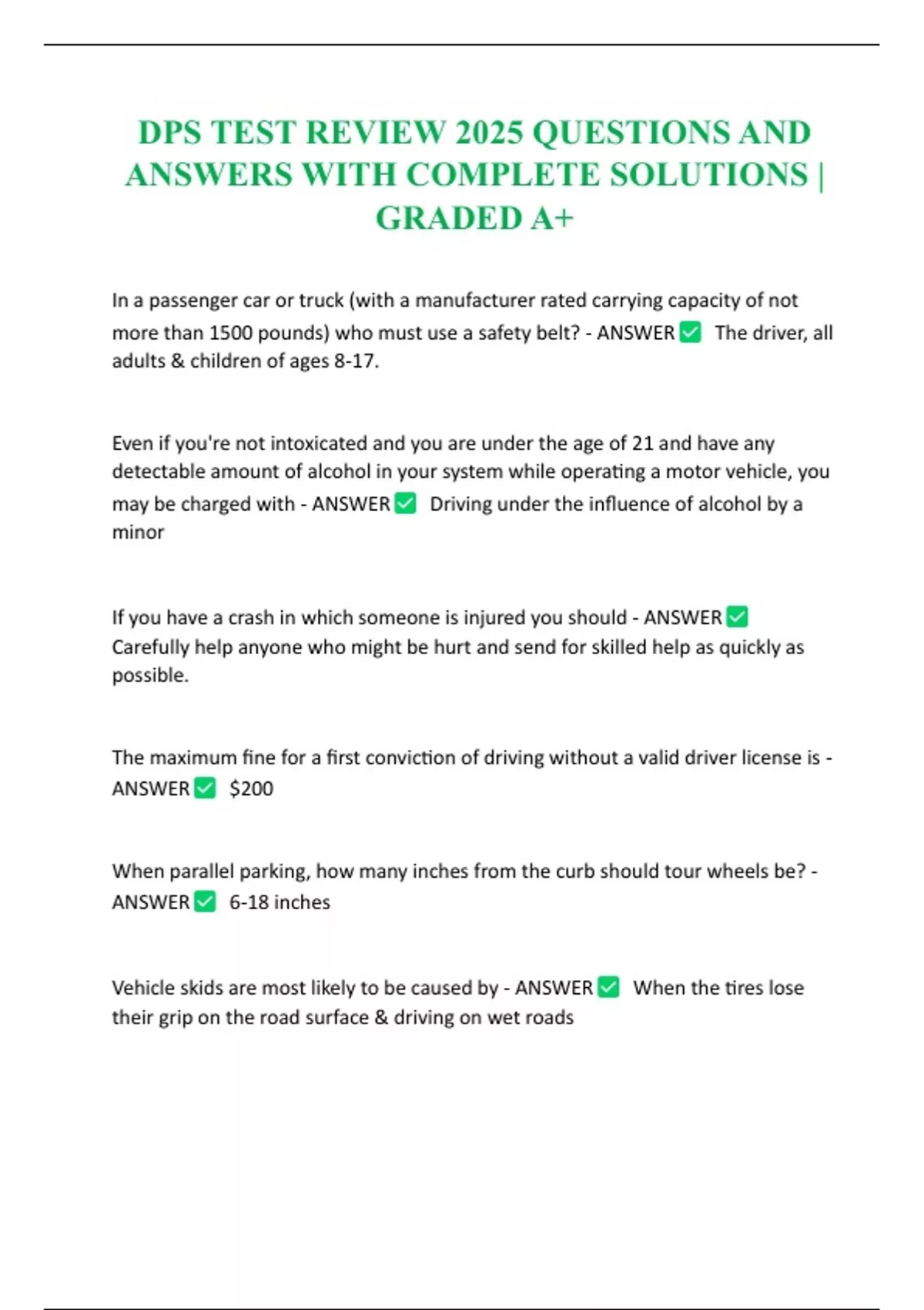 DPS TEST REVIEW 2025 QUESTIONS AND ANSWERS WITH COMPLETE SOLUTIONS | GRADED A+