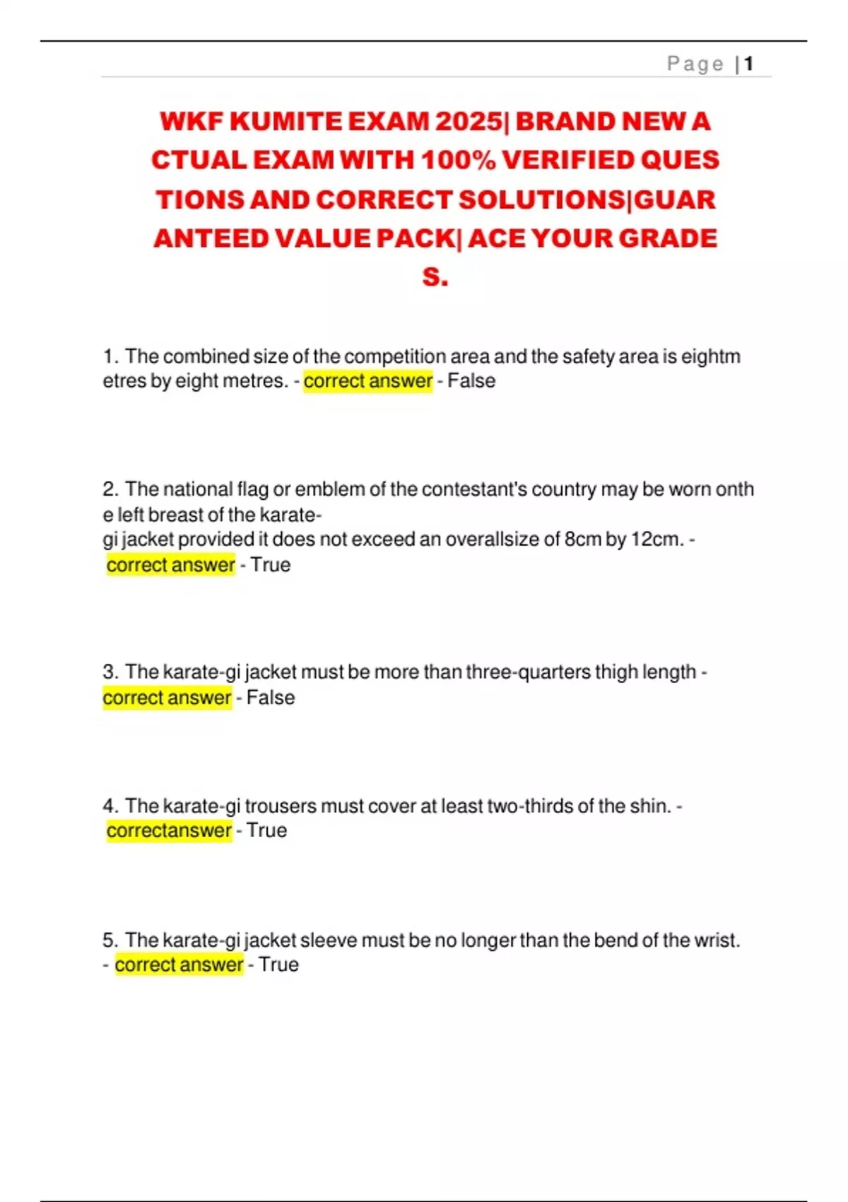 WKF KUMITE EXAM 2024 WITH 270 REAL EXAM QUESTIONS AND CORRECT ANSWERS (100% CORRECT ANSWERS WITH RATIONALES) WORLD KARATE FEDERATION KUMITE TEST 2024/2025(NEW!)