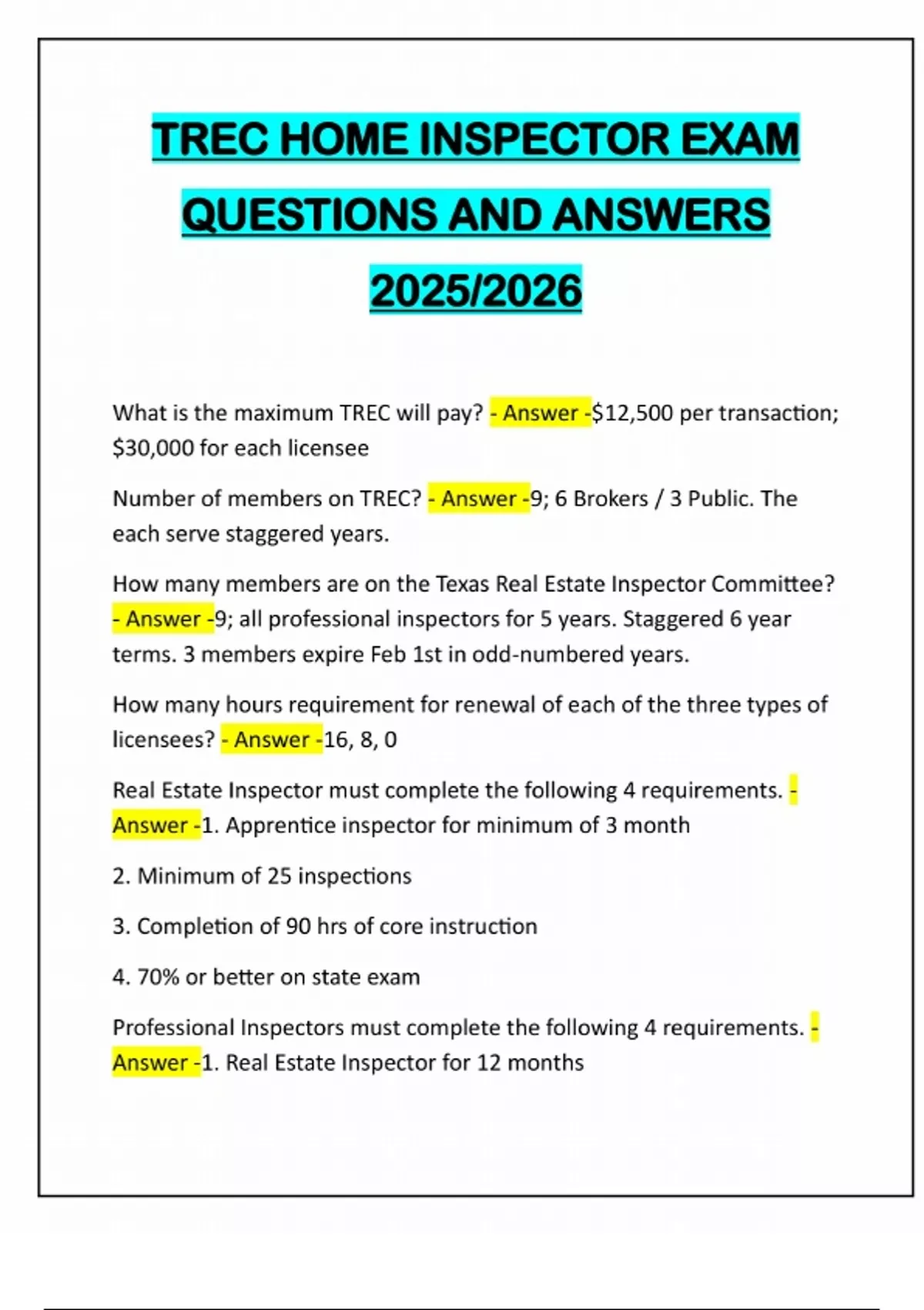 Home Inspector Exams all 100% Solved and Guaranteed A+ Grades/2025/2026