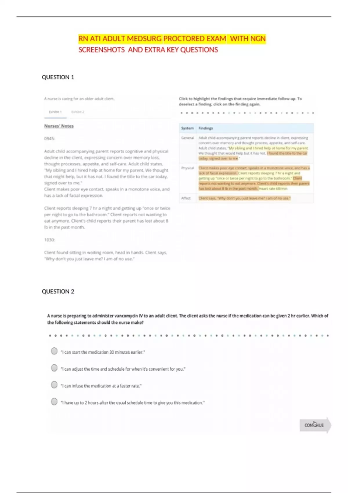 med surg actual exams