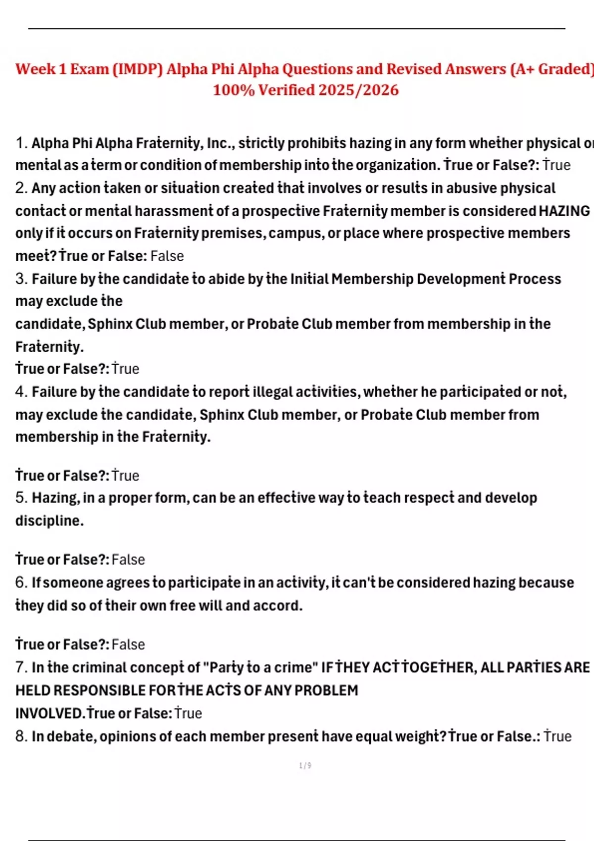 Alpha Phi Alpha – Final Study Cards – Questions and Answers – Latest Updated 2025/2026 – 100% Guaranteed Pass Alpha Phi Alpha – Chapter 3 Questions and Answers – Verified Content for 2025/2026 IMDP Alpha Phi Alpha Fraternity, Inc. – IMDP Process Week 2 – Exam Questions and Answers – 2025/2026 New and 100% Verified (A+ Graded) Alpha Phi Alpha – Pret