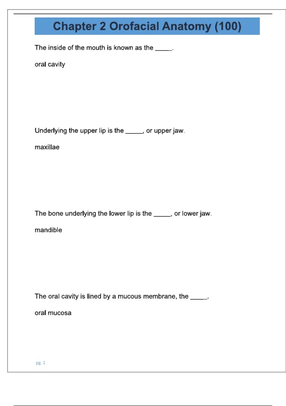 Chapter 2 Orofacial Anatomy (100) (Latest 2025/ 2026 Update) Questions and Correct answers (100% Verified Answers) A+ Succes.