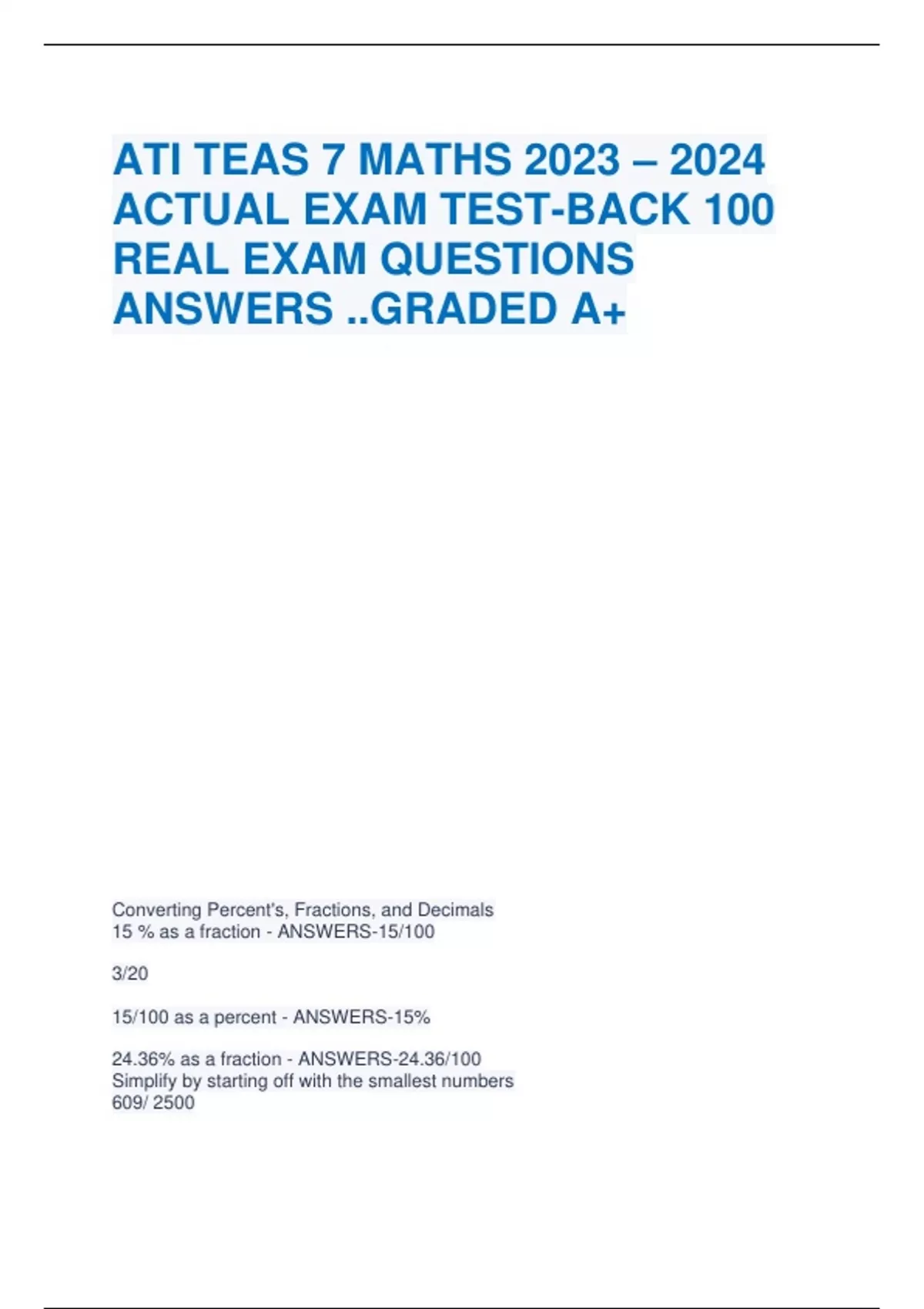 ATI TEAS 7 EXAM QUESTIONS (SCIENCE AND MATH) LATEST UPDATED 2024 EXAM WITH DETAILED QUESTIONS AND CORRECT ANSWERS ATI TEAS 7 ENGLISH & LANGUAGE USAGE 100+ QUESTIONS WITH ANSWERS/A+ GRADE