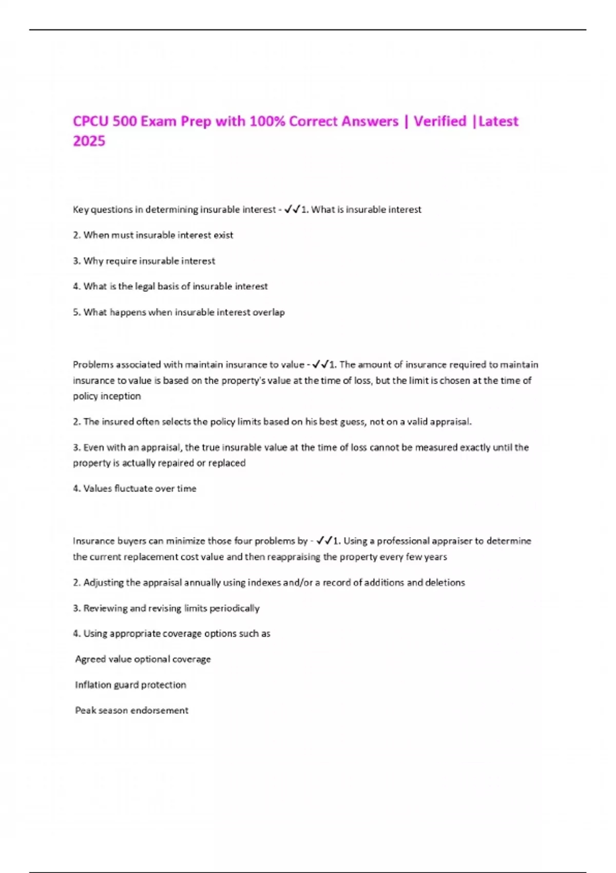 CPCU 500 Exam Prep with 100% Correct Answers | Verified |Latest 2025