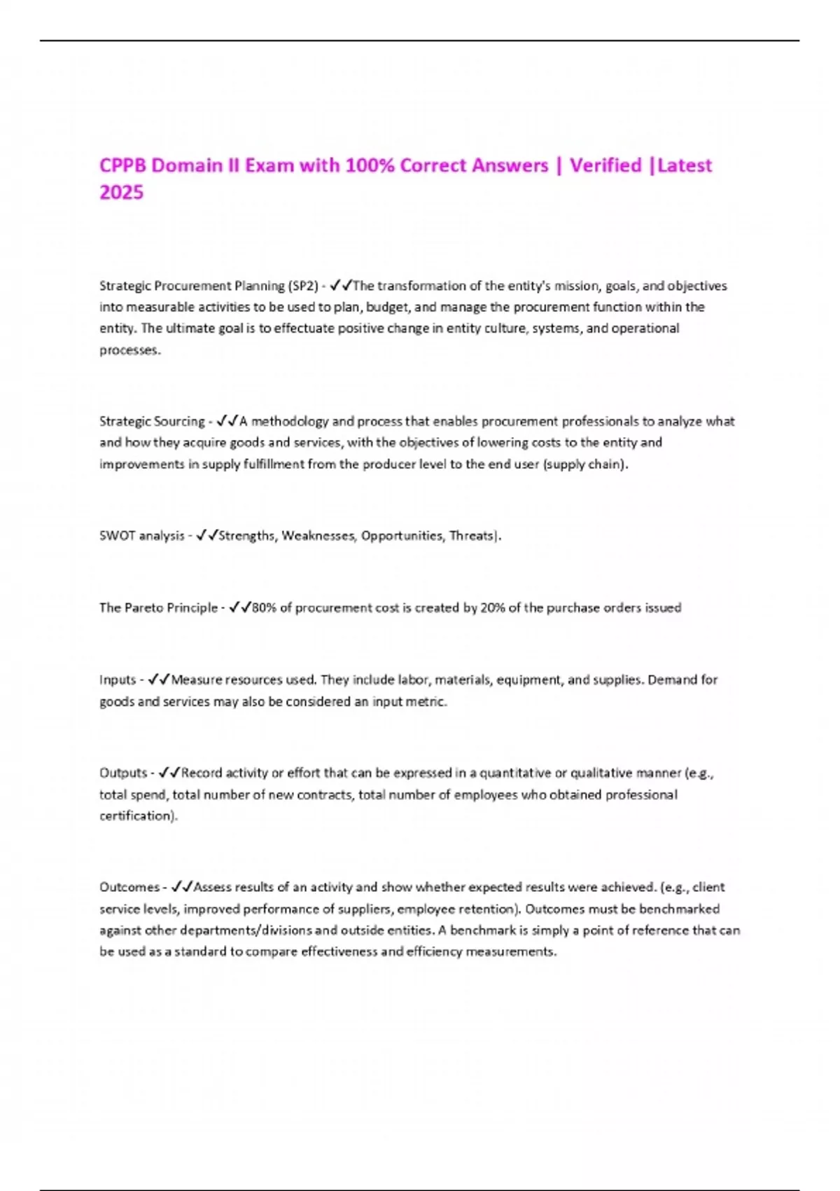 CPPB Exam - Domain VI - Strategic Procurement Planning Exam with 100% Correct Answers | Verified |Latest 2025