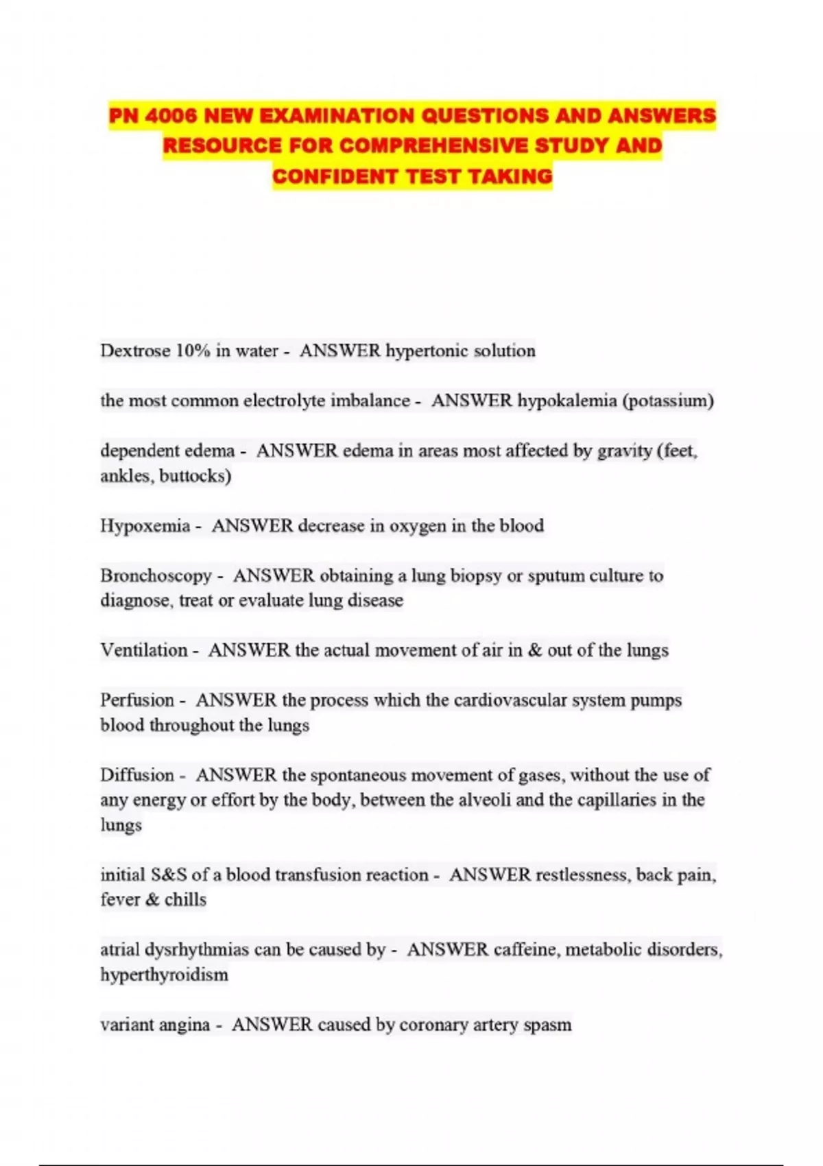 PN 4006 NEW EXAMINATION QUESTIONS AND ANSWERS RESOURCE FOR COMPREHENSIVE STUDY AND CONFIDENT TEST TAKING
