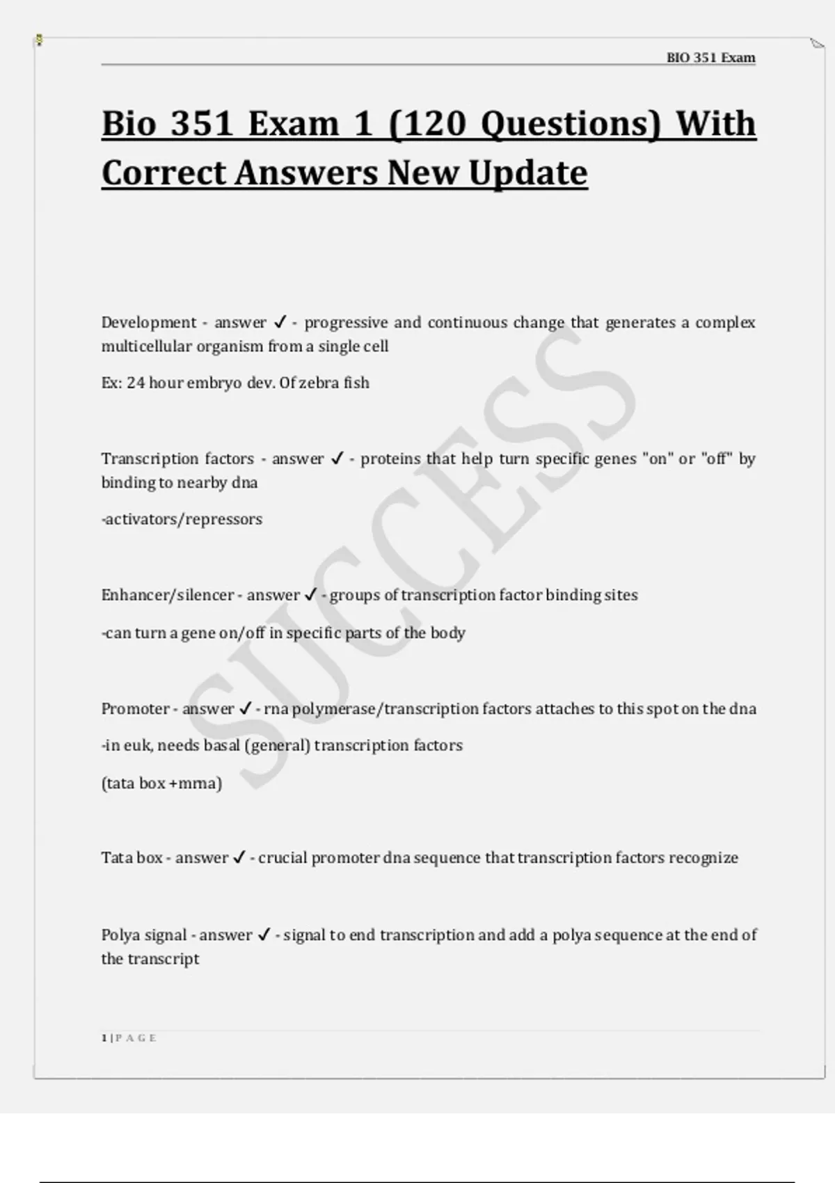 BIO 351 Exams Q&A Solutions (TOP TAKEN )