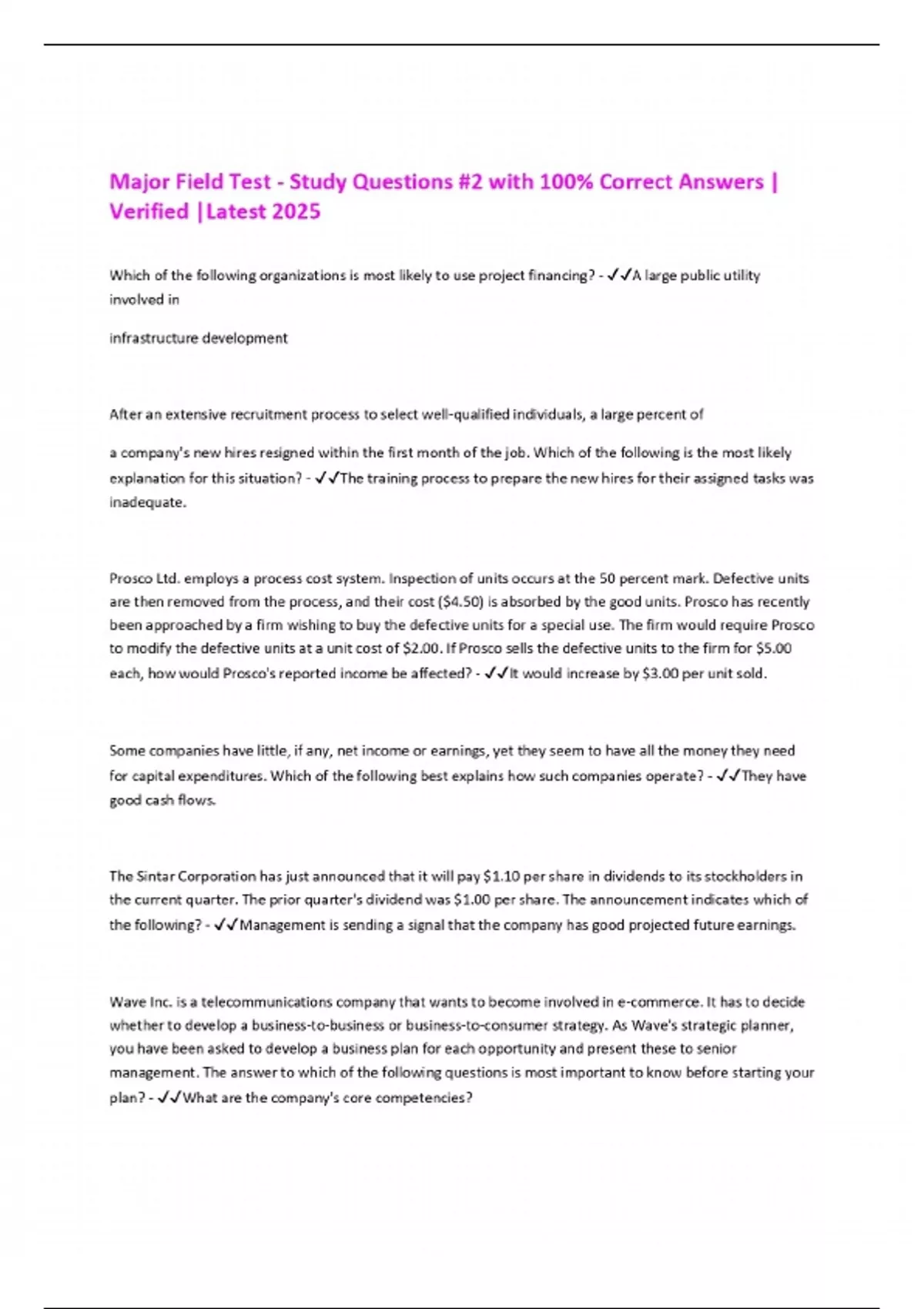 Major Field Test - Study Questions #2 with 100% Correct Answers | Verified |Latest 2025