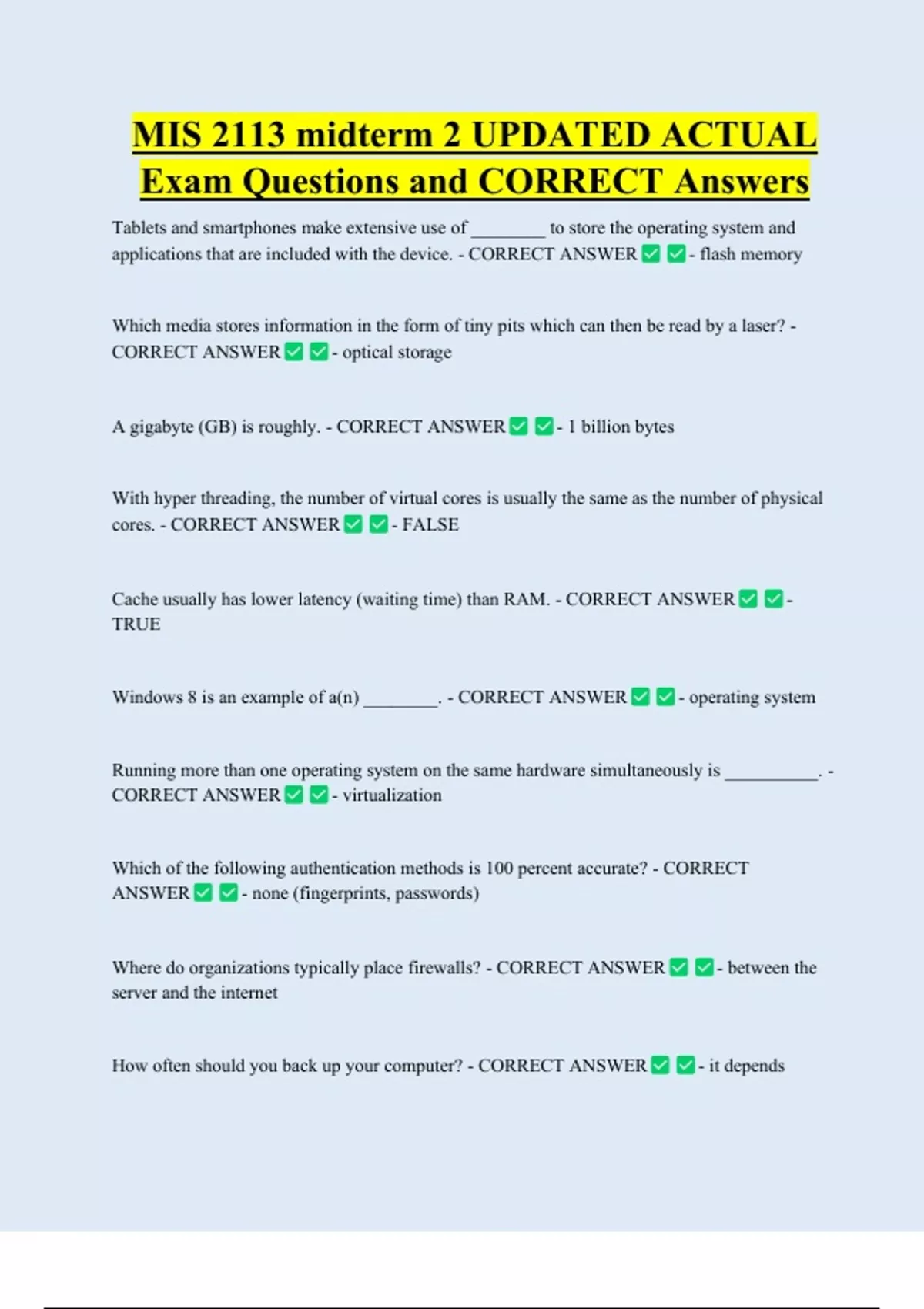 MIS 2113 Bundled Exam Questions WITH CORRECT Answers