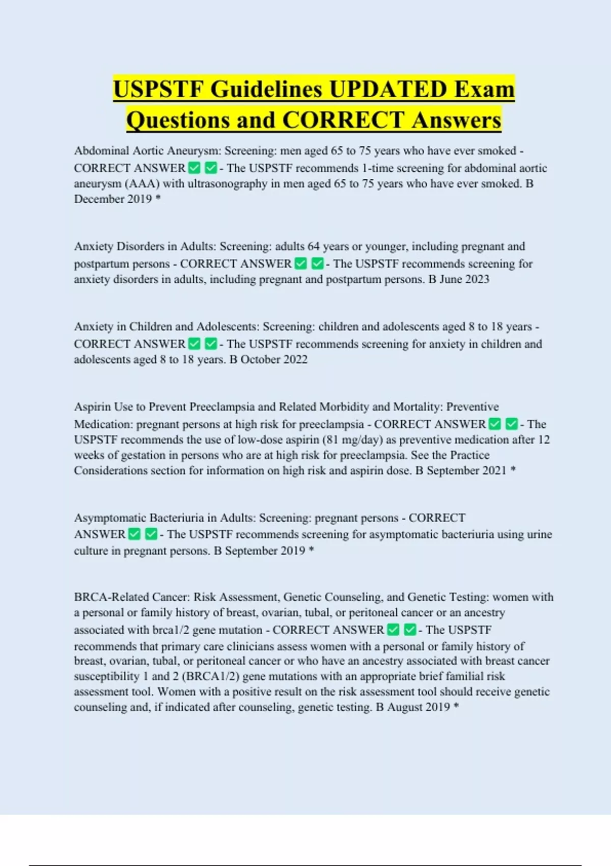 USPSTF Bundled Exam Questions WITH CORRECT Answers