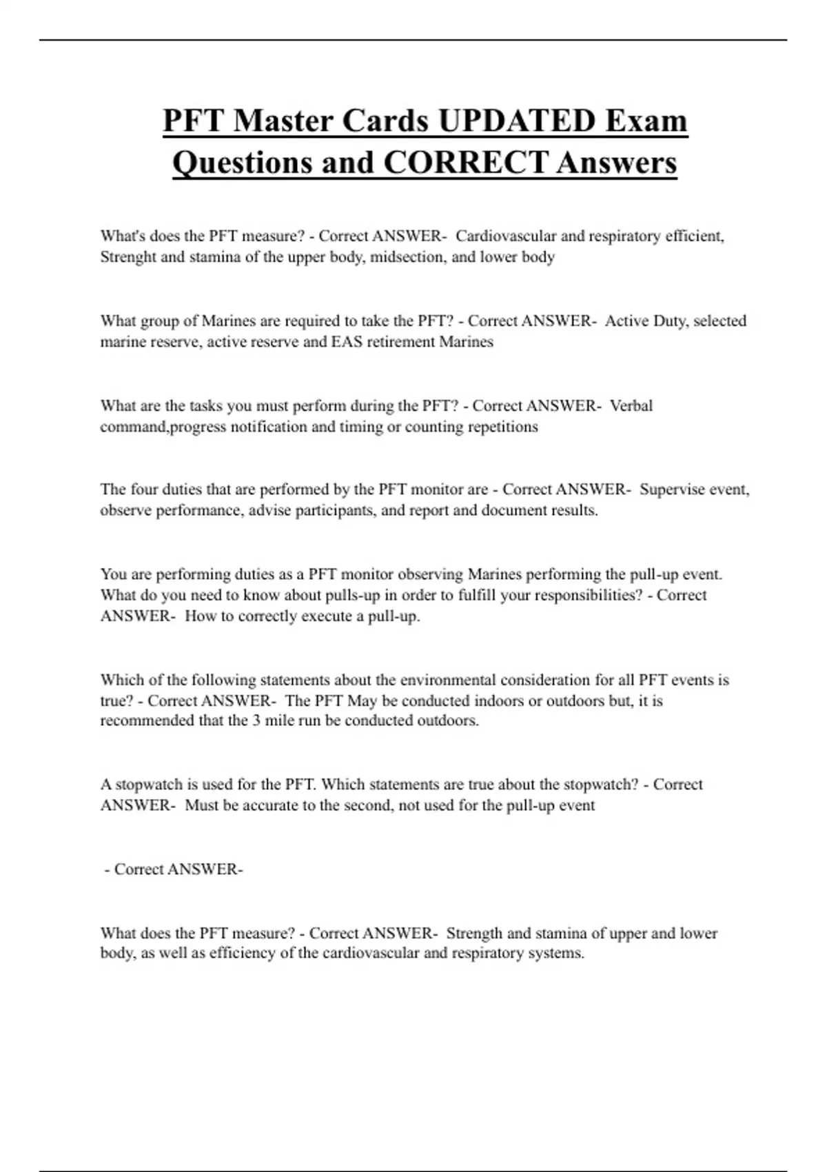 PFT Bundled Exam Questions WITH CORRECT Answers