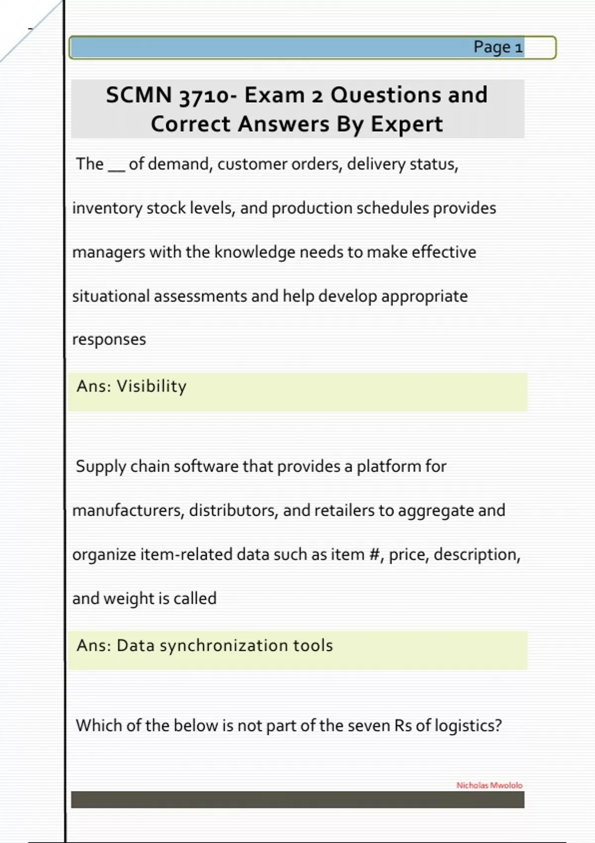 SCMN 3710 Exam Questions with Detailed Verified Answers