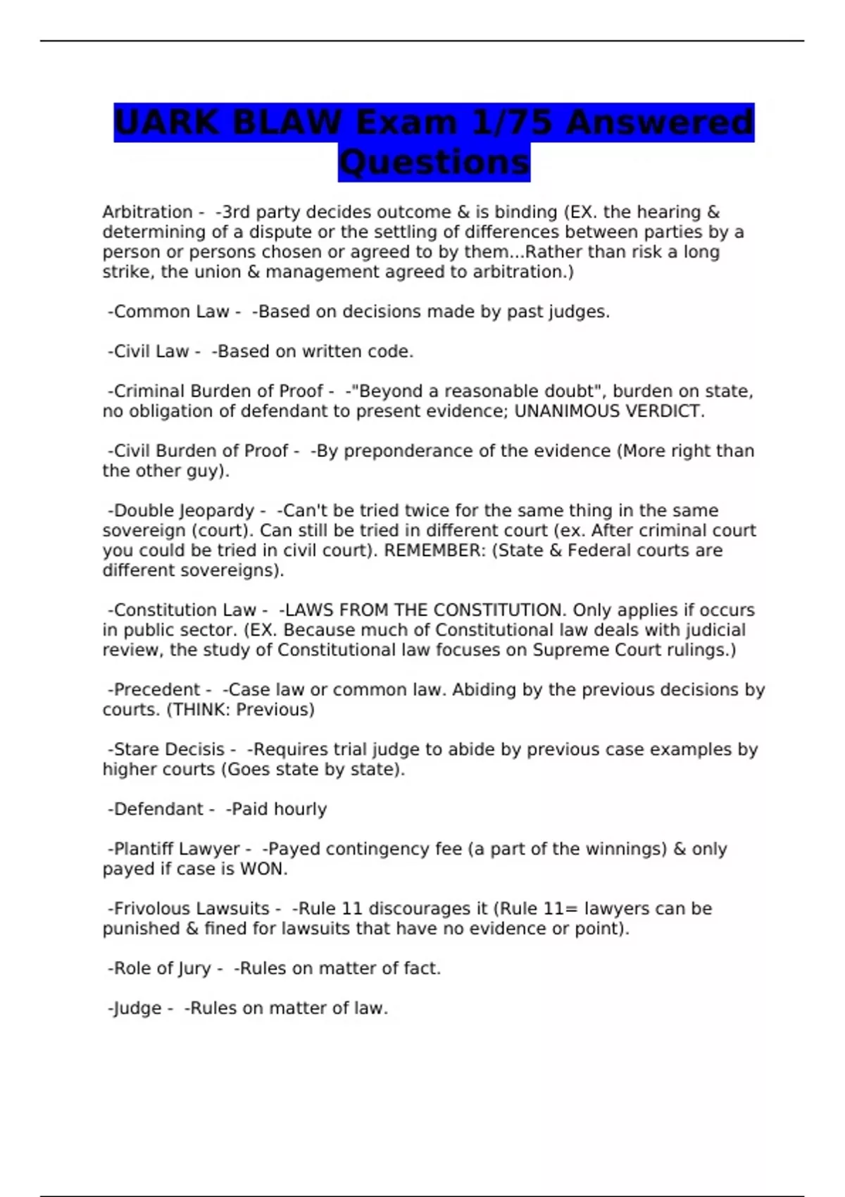 UARK EXAMS - QUESTIONS AND ANSWERS - BUNDLE