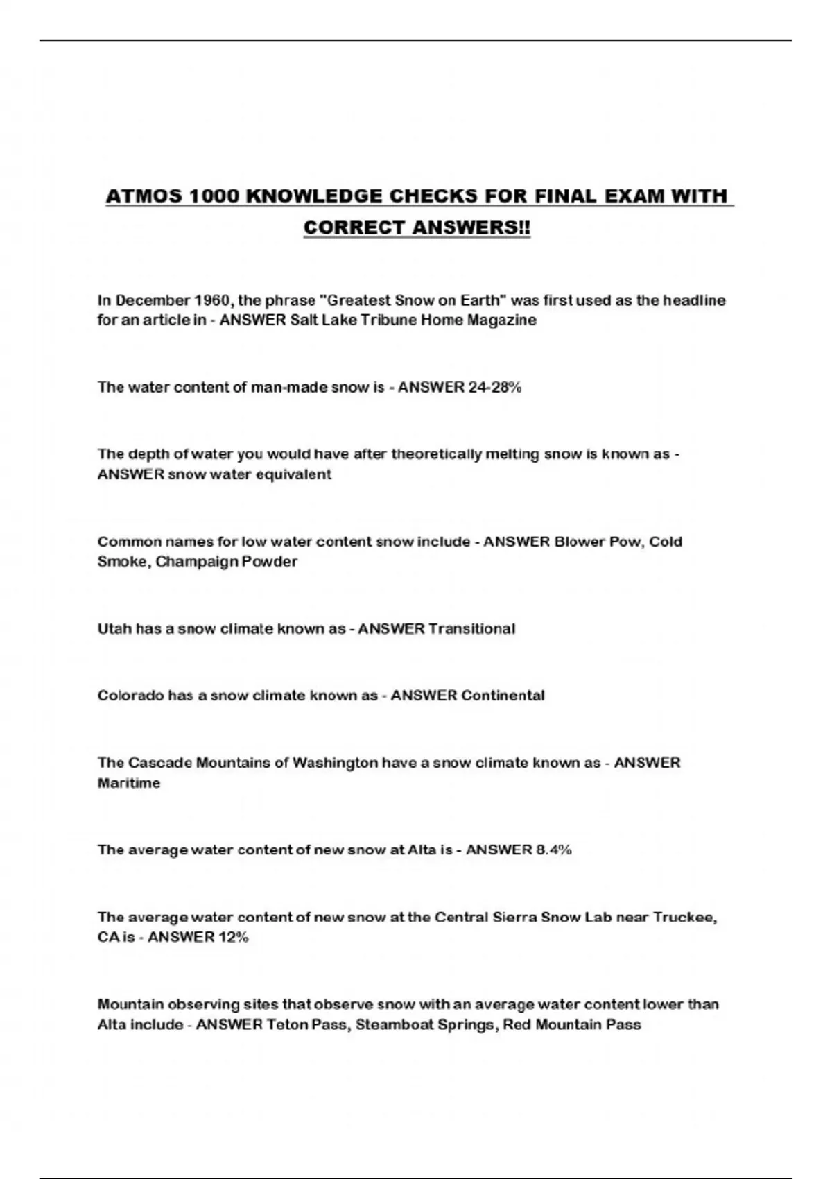 ATMOS 1000 KNOWLEDGE CHECKS FOR FINAL EXAM WITH CORRECT ANSWERS!!