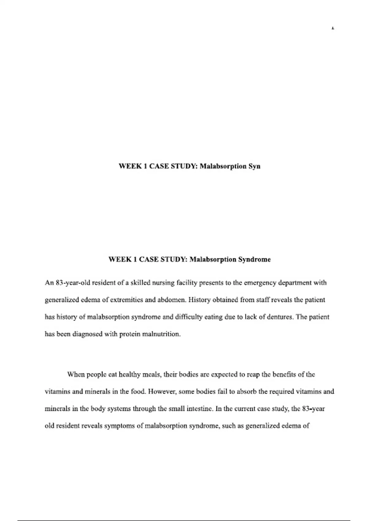 NURS 6501 WEEK 1 Malabsorption Syndrome CASE STUDY (NEW 2025/ 2026 UPDATE)ACTUAL EXAM: NURS 6501 ADVANCED PATHOPHYSIOLOGY| ACCURATE AND VERIFIED QUESTIONS WITH DETAILED ANSWERS- WALDEN UNIVERSITY!!!