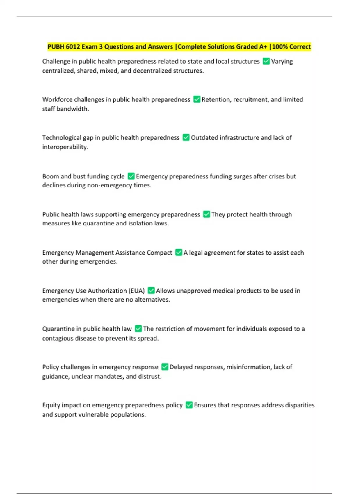 PUBH 6012 Exam 3 Questions and Answers |Complete Solutions Graded A+ |100% Correct 2 Exam (elaborations) PUBH 6012 Exam 3 Questions and Answers |Complete Solutions Graded A+ |100% Correct 3 Exam (elaborations) PUBH 6012 Exam 2 Week 6 Questions and Answers |Complete Solutions Graded A+ |100% Correct 4 Exam (elaborations) PUBH 6012 Policy Exam 2 Ques