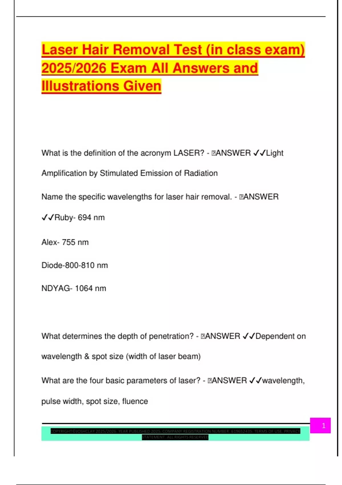 Laser Hair Removal Test (in class exam) 2025/2026 Exam All Answers and Illustrations Given