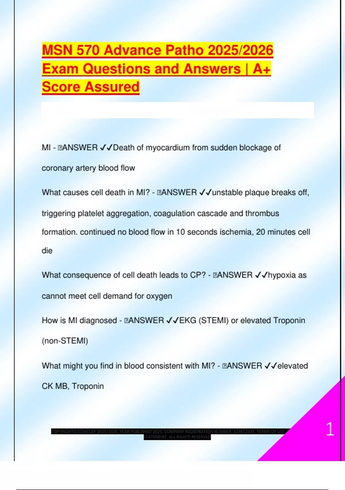 MSN 570 PATHO EXAM PACKAGE DEAL QUESTIONS AND VERIFIED DETAILED ANSWERS | 100% GUARANTEED PASS | ALREADY GRADED A+