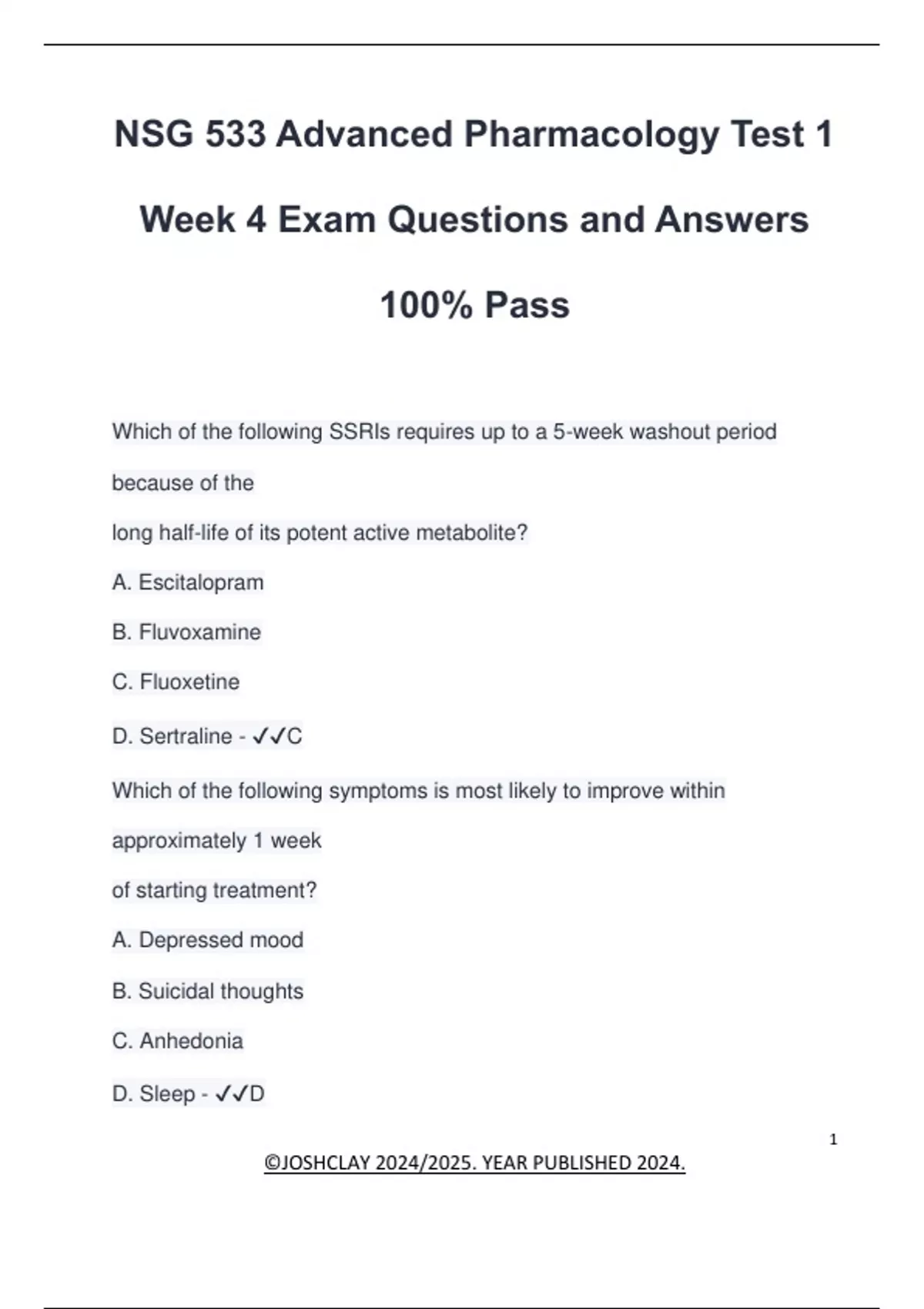 NSG 533 Advanced Pharmacology Test 1 Week 4 Exam Questions and Answers 100% Pass