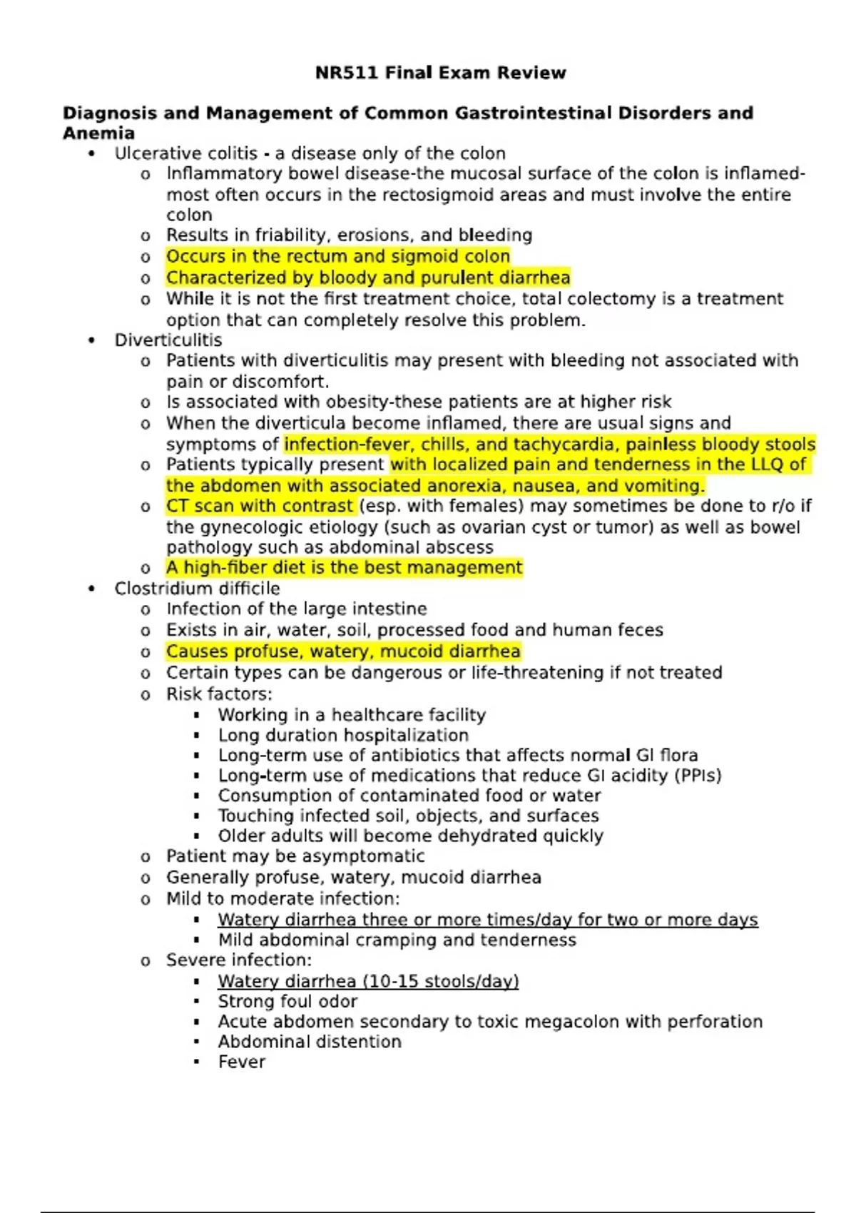 NR511 Differential Diagnosis & Primary Care Practicum Final Exam: 2025/ 2026 Complete Study Guide Solutions Highest Grade A+ Rewarded.