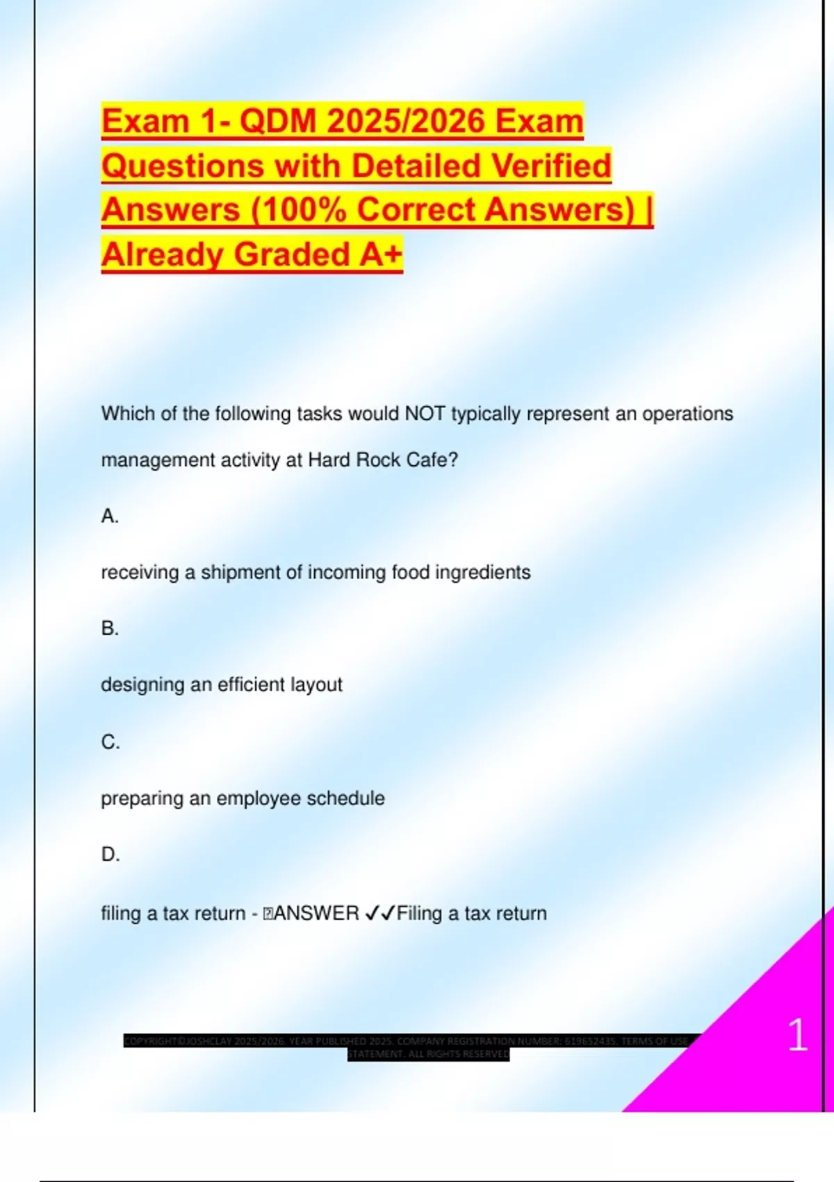 QDM Exam 1 2025/2026 Exam Questions and Detailed Answers | Get it 100% Correct Answers