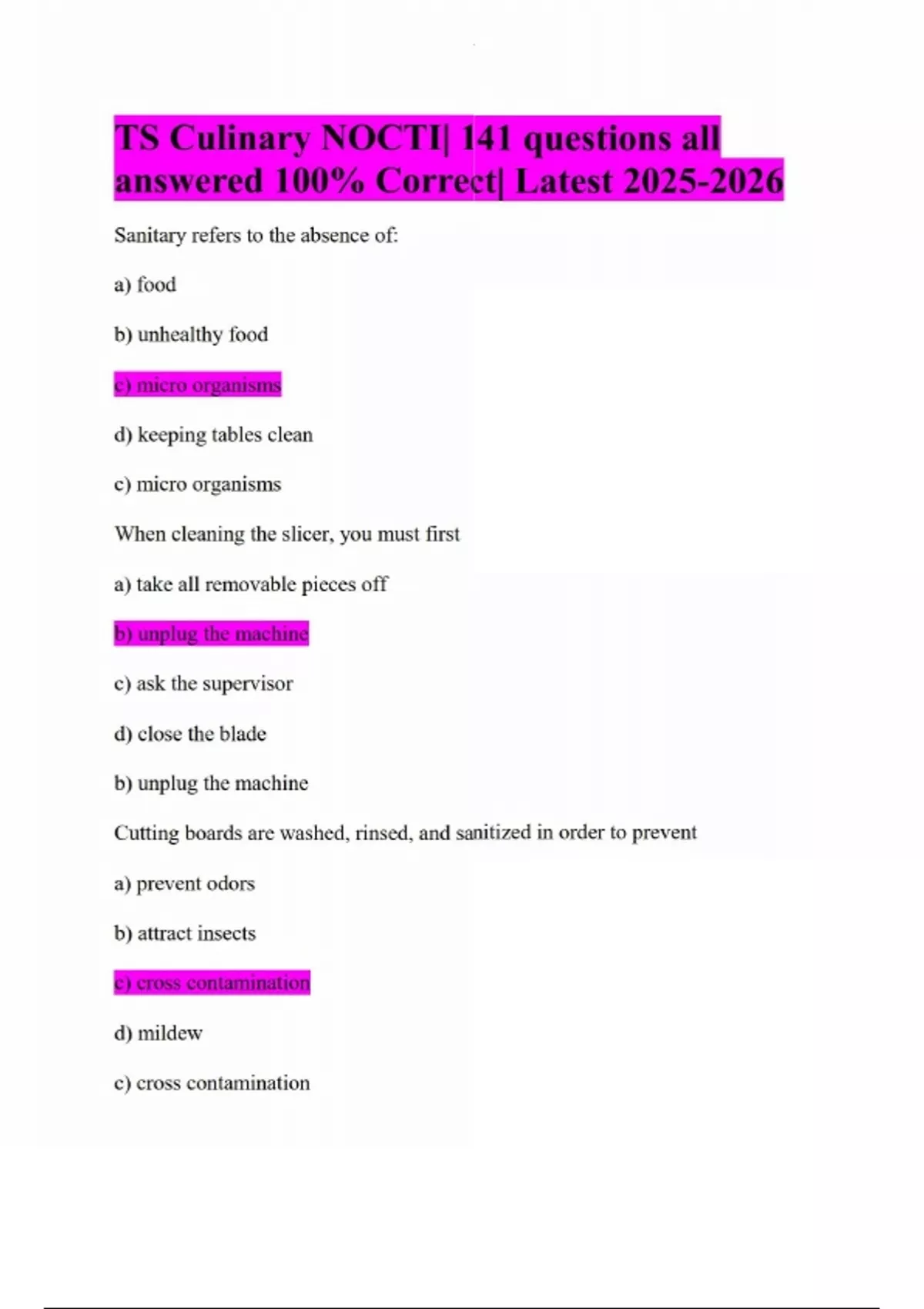 TS Culinary NOCTI| 141 questions all answered 100% Correct| Latest