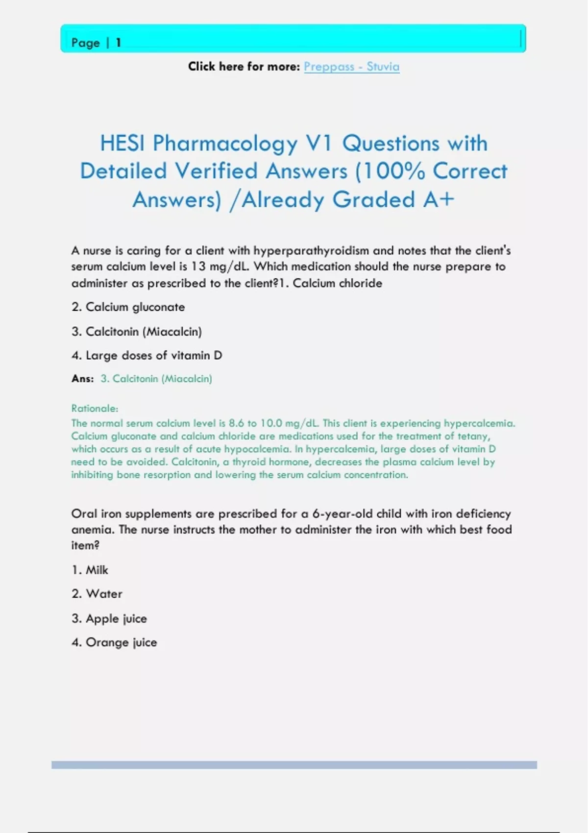 HESI Pharmacology Questions with Detailed Verified Answers (100% Correct Answers) /Already Graded A+