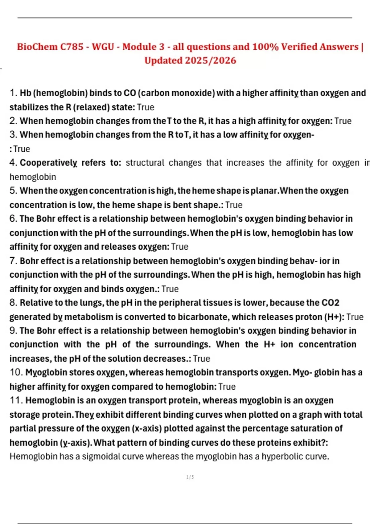 Package deal for WGU Biochemistry C785 – All Possible Questions and 100% Revised Answers – Latest Update 2025/2026