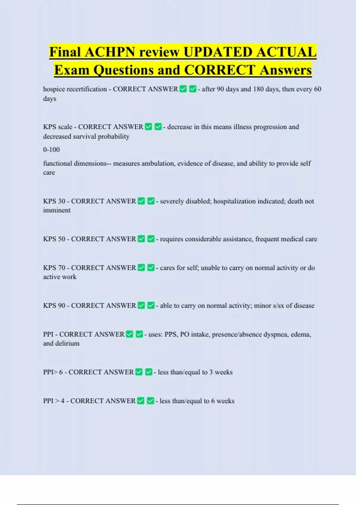 ACHPN Bundled Exam Questions WITH CORRECT Answers