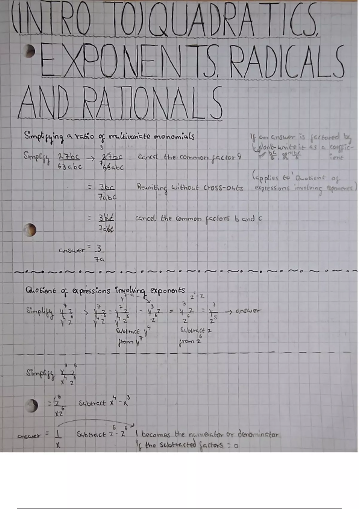 This pack features study notes on quadratics, exponents, radicals, and rationals FOR $11.99! Recommended for Intermediate Algebra or MATH 98 students, but also as your reference guide for future math courses! Message me if you have any questions or concerns with your purchase.