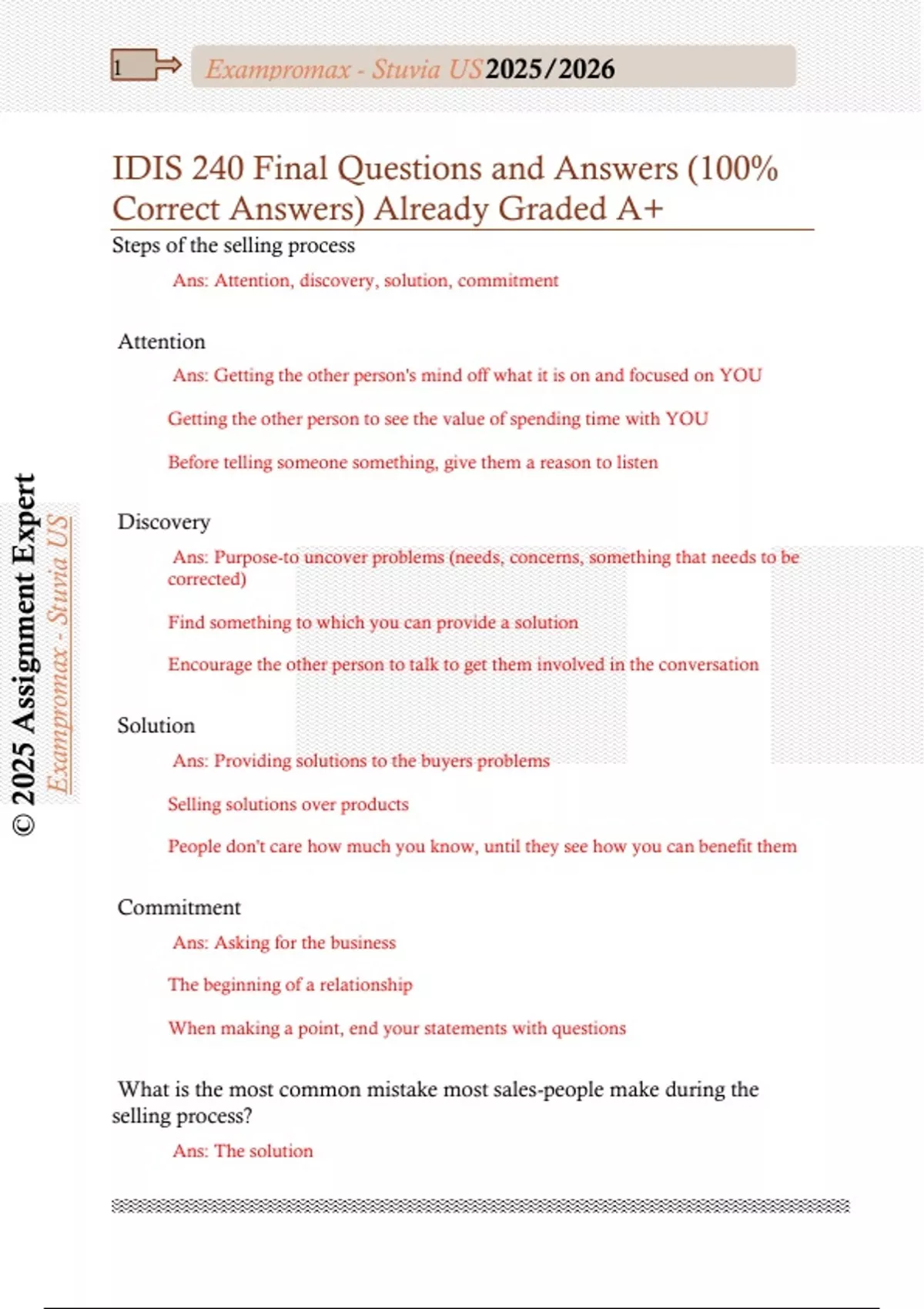 IDIS 240 Questions and Answers (100% Correct Answers) Already Graded A+