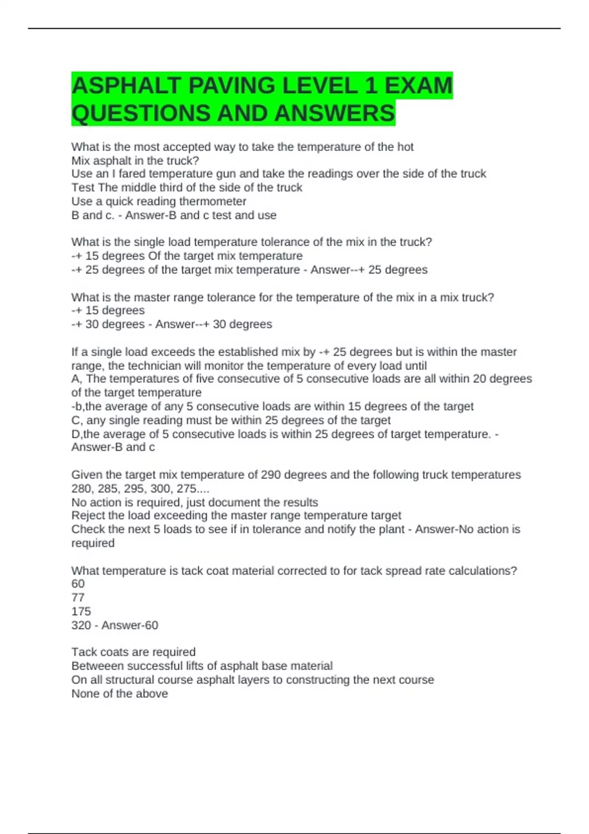 Exam (elaborations) WORK ZONE TEMPORARY TRAFFIC CONTROL TECH PRE-QUIZ EXAM QUESTIONS AND ANSWERS 2 Exam (elaborations) SUBGRADE & BASE INSPECTION – FDOT EXAM QUESTIONS WITH COMPLETE SOLUTIONS 3 Exam (elaborations) STATE OF FLORIDA DRIVER/OPERATOR EXAM QUESTIONS WITH CORRECT ANSWERS 4 Exam (elaborations) MOT EXAM (LTAP) QUESTIONS WITH VERIFIED ANSW