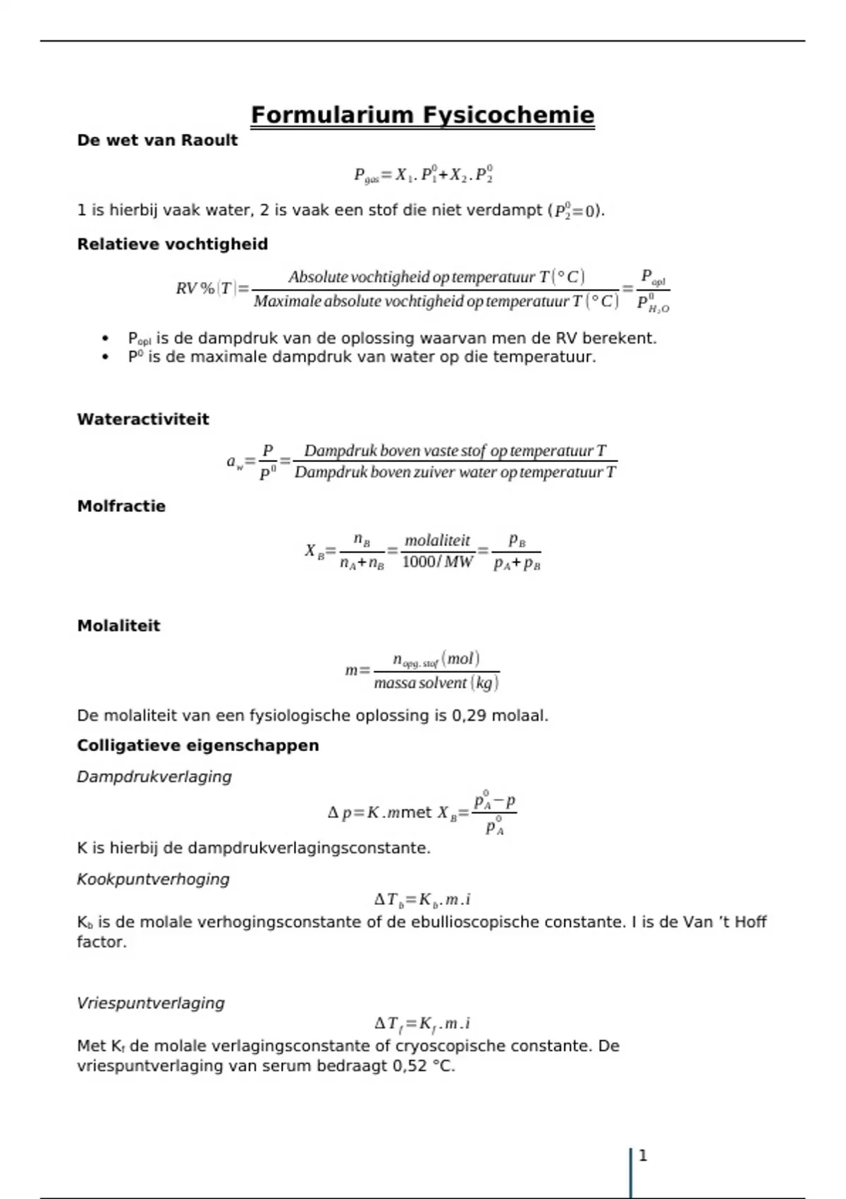 TOTAALPAKKET FYSICOCHEMIE: samenvatting formularium key questions - Geslaagd eerste zit