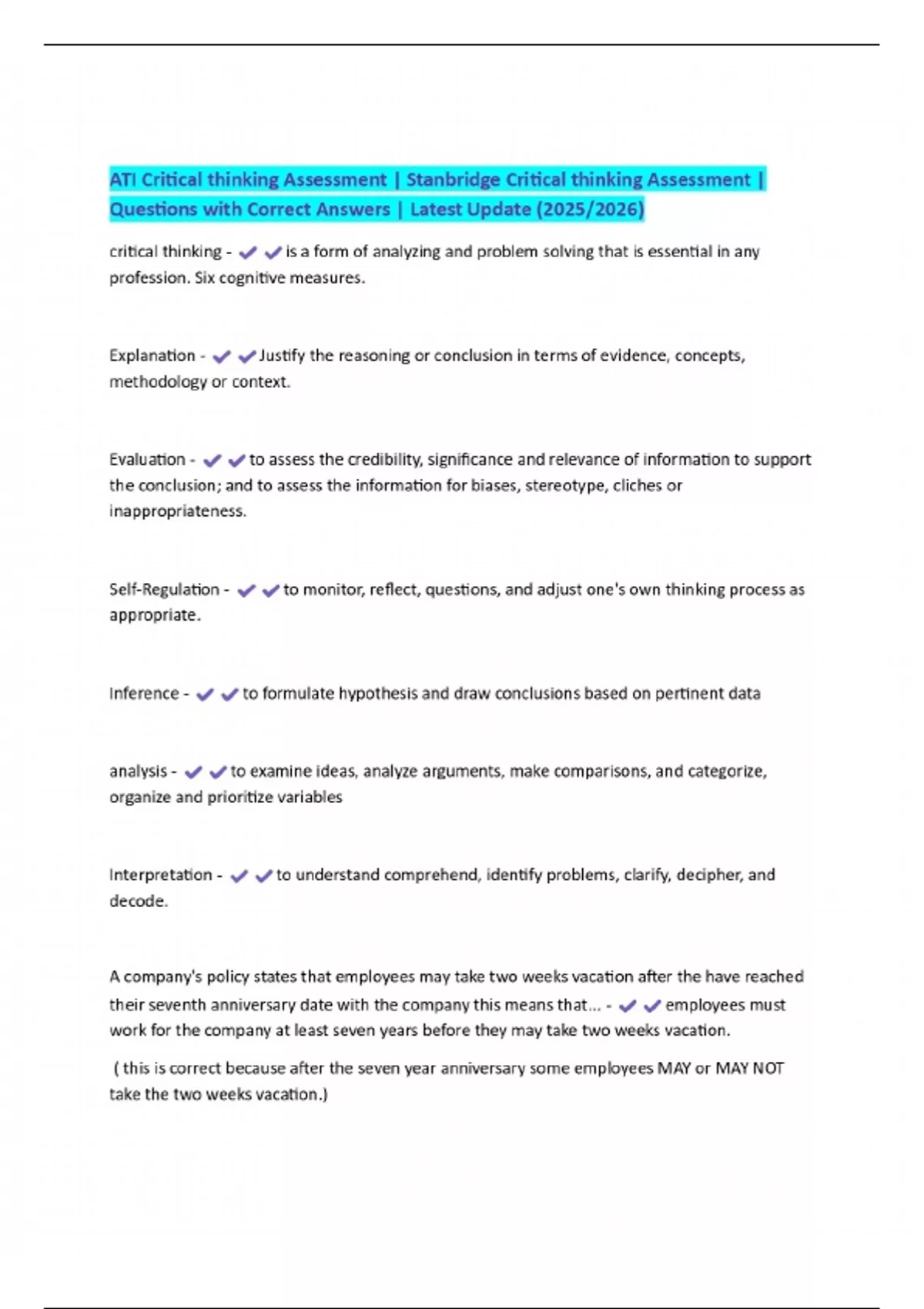 EXAMS BUNDLE PACKAGE:::::ATI Critical thinking Exam | Questions with Correct Answers | 100% Pass