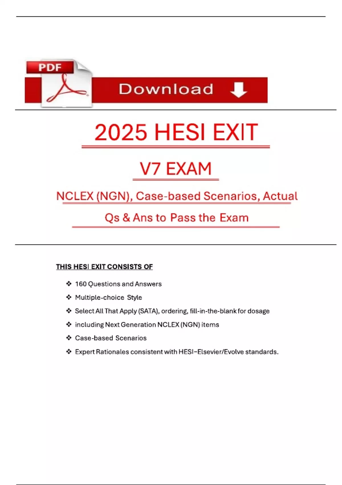 2025 RN HESI EXIT V1 - V7 Qs & Ans to Pass the Exam (NGN style Qs & Case studies), 100% Verified