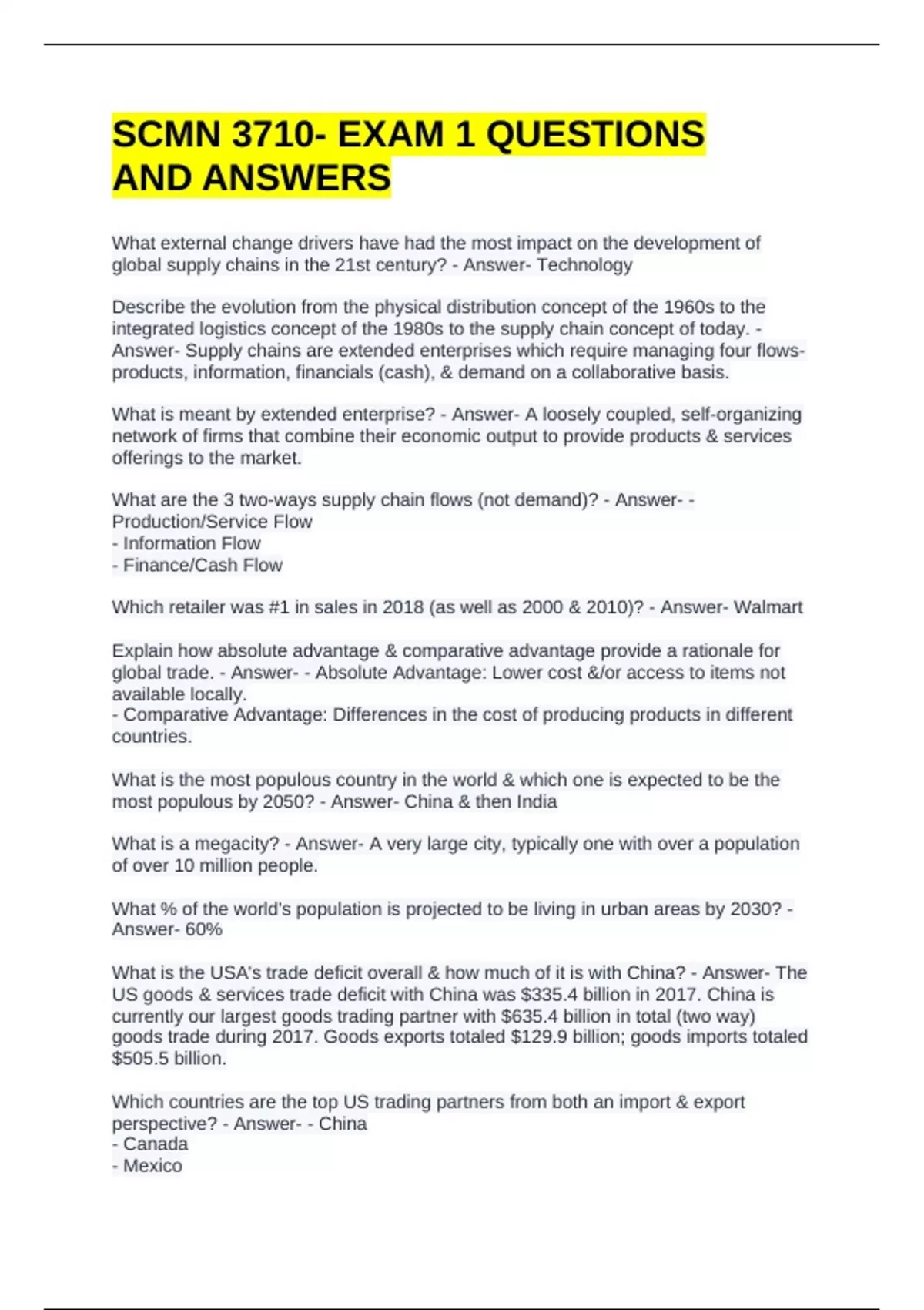 SCMN 3710 EXAM QUESTIONS AND ANSWERS BUNDLE PACKAGE