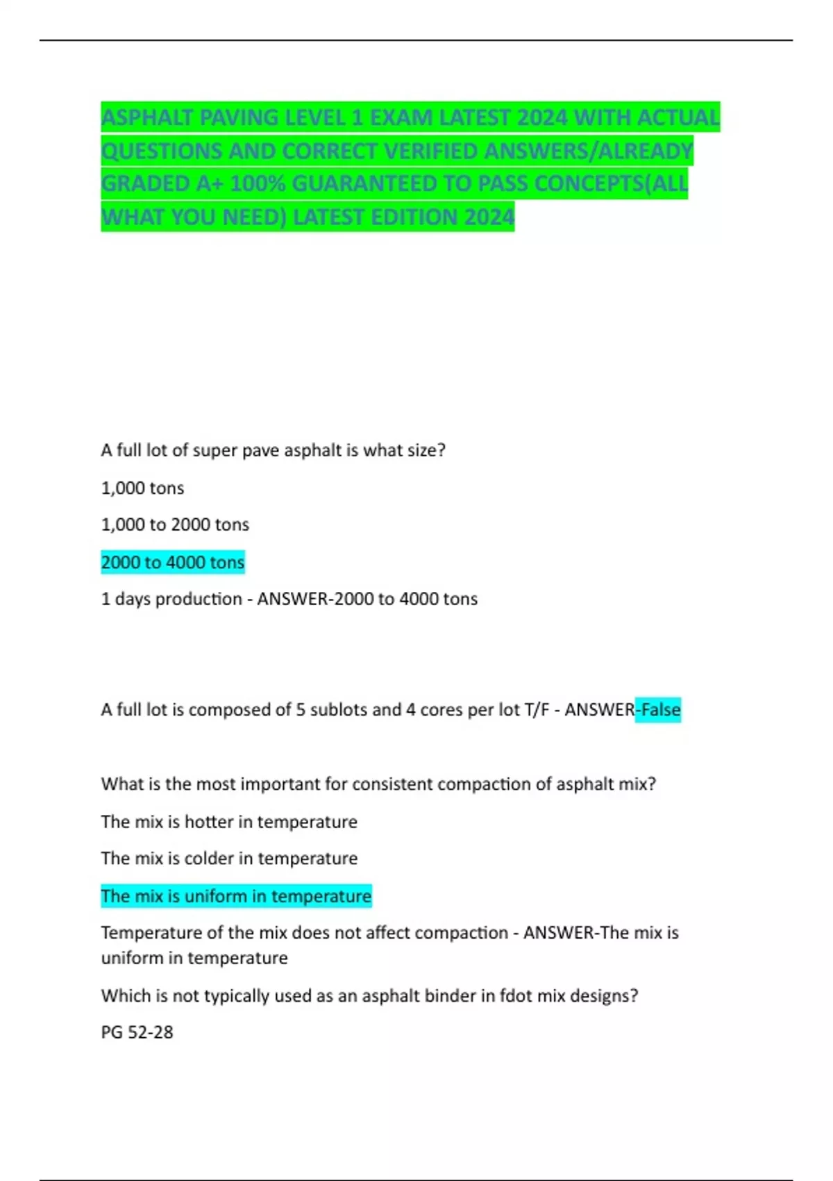 Asphalt Paving Level 1& 2 exam bundle!!! Asphalt Paving Level 1& 2 exam bundle!!!