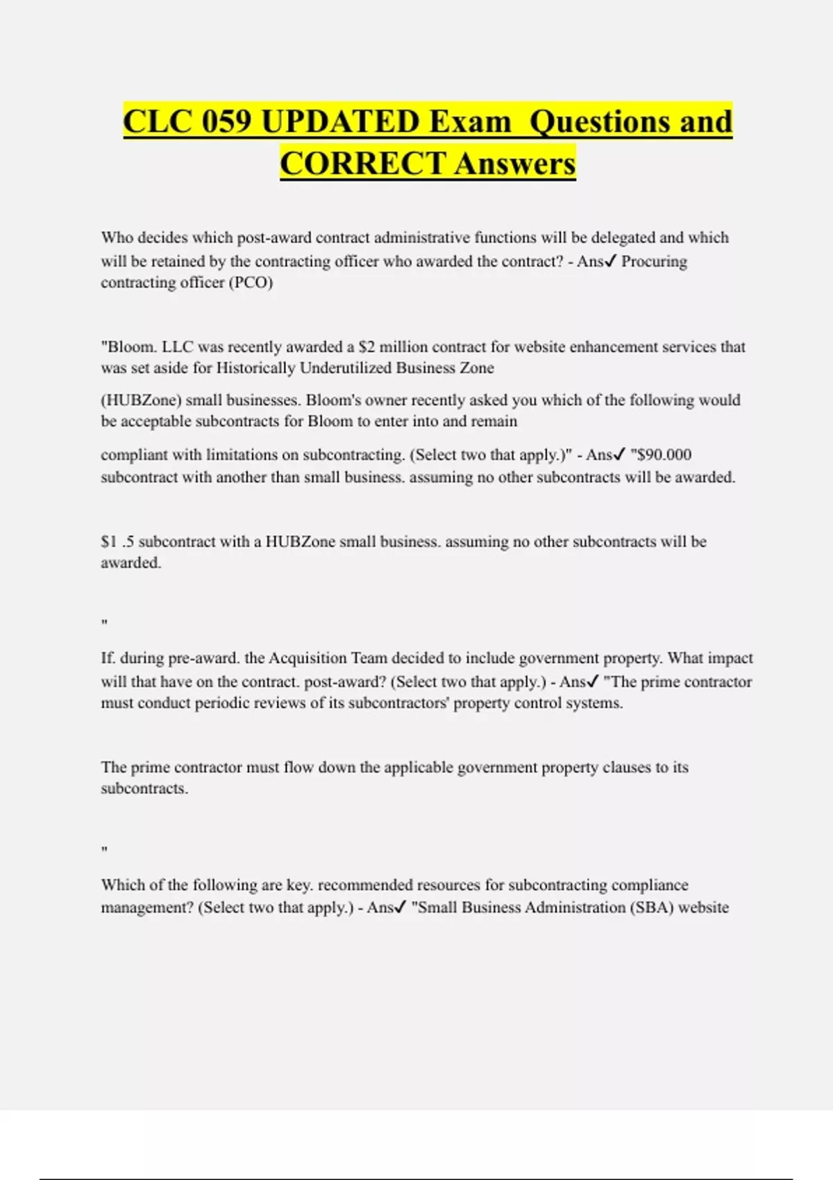 CLC 059 Bundled Exam Questions WITH CORRECT Answers