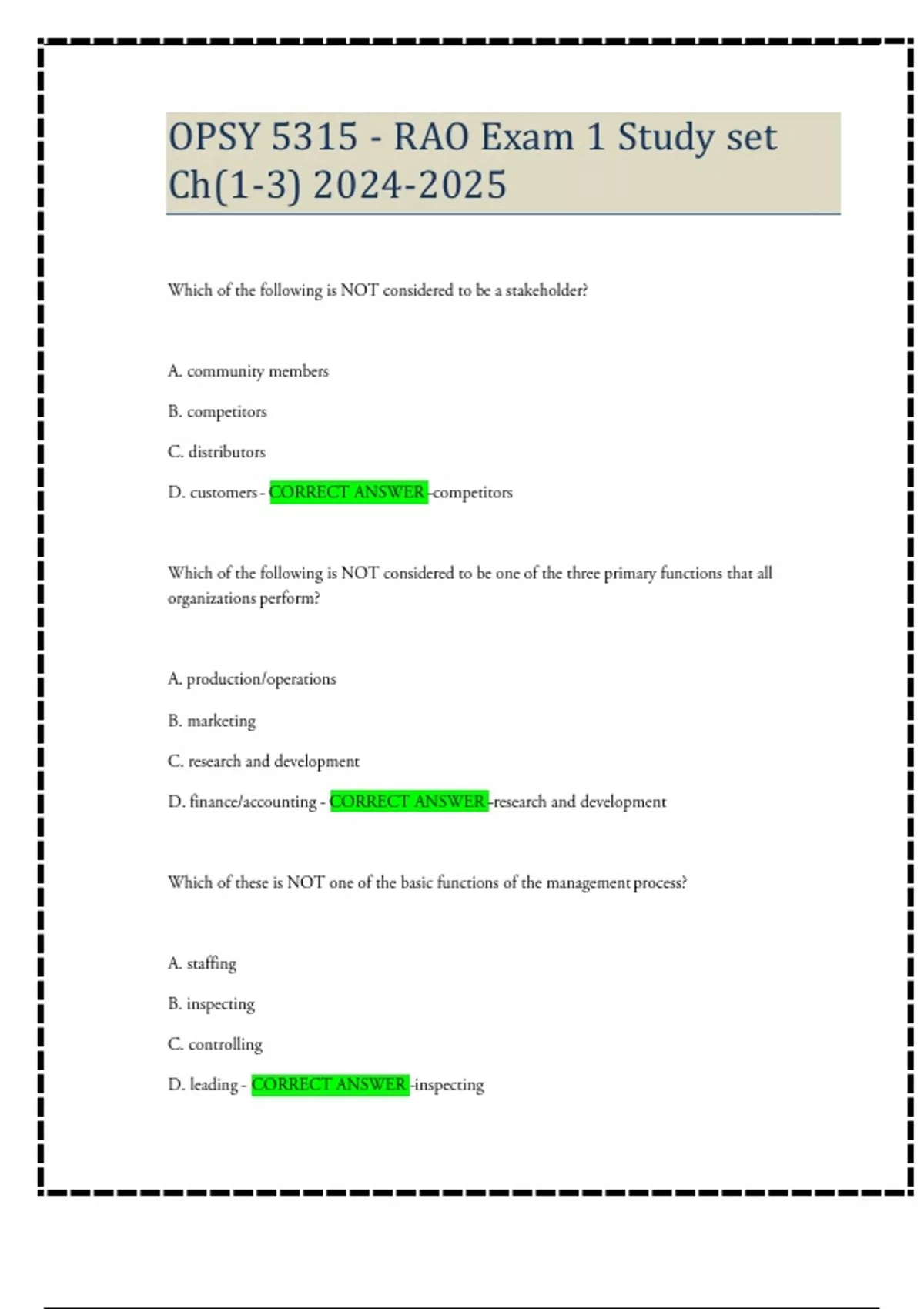 1 Exam (elaborations) OPSY 5315 Exam 3 Study Quiz Guide 2 Exam (elaborations) OPSY 5315 - Rao- Exam 2 Study Set Ch(4-9) 3 Exam (elaborations) OPSY 5315 - RAO Exam 1 Study set Ch(1-3)