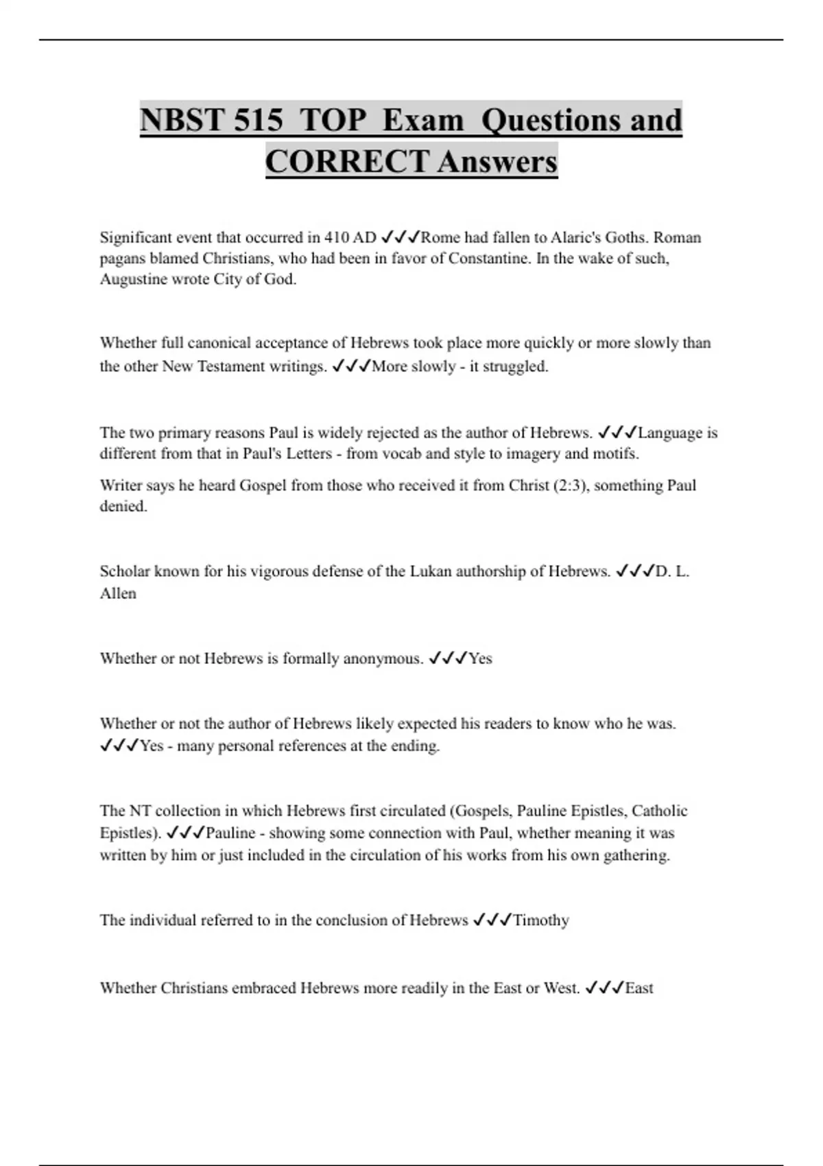 Liberty University NBST 515 New Testament Orientation I (ICE): The General Epistles/Revelation UPDATED ACTUAL Exam Questions and CORRECT Answers