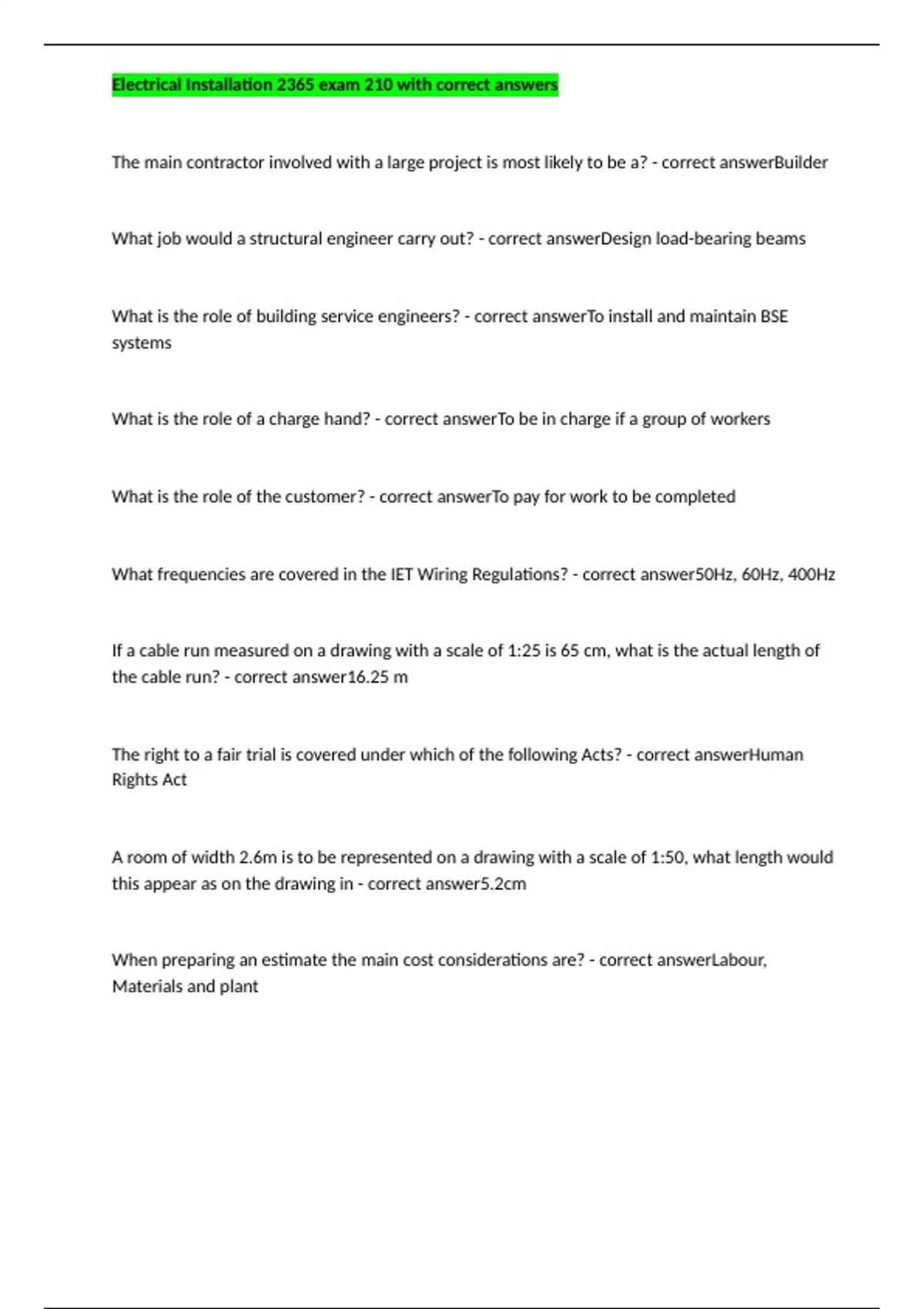 Electrical Installation 2365 exam 210