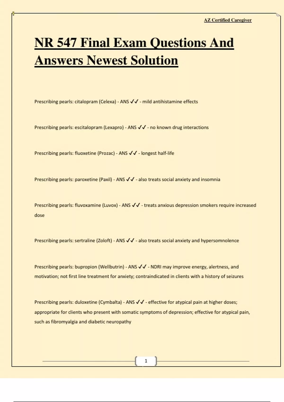 ACTUAL NR 547 Exams Solutions Package Deal 100% Helpful